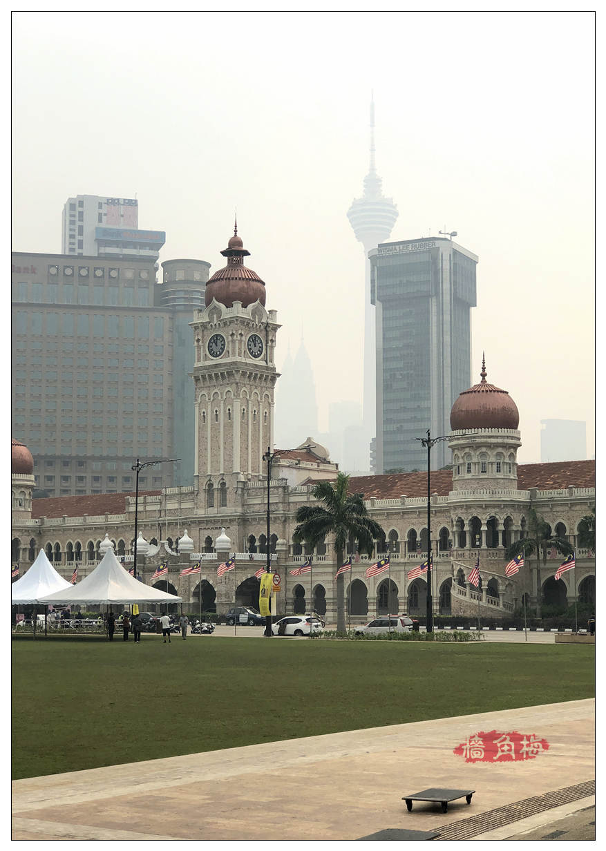 这次去马来西来,虽然看天气预报说是有雨,但直到离开时在机场的时候才下雨了,其他时候的天气都还算好,但都是灰蒙蒙的,(回来后看新闻才知道,原来是印尼大火波及周围邻居了)所以很多时候都没有拍摄欲望了,来到独立广场看到又是好多地方在维护修缮,只能草草地拍了一圈到此一游,对面原本可以清晰地看到双子塔和电视塔的,而现在只能隐约辨认出,没办法,出去旅游就是如此,非常遗憾。