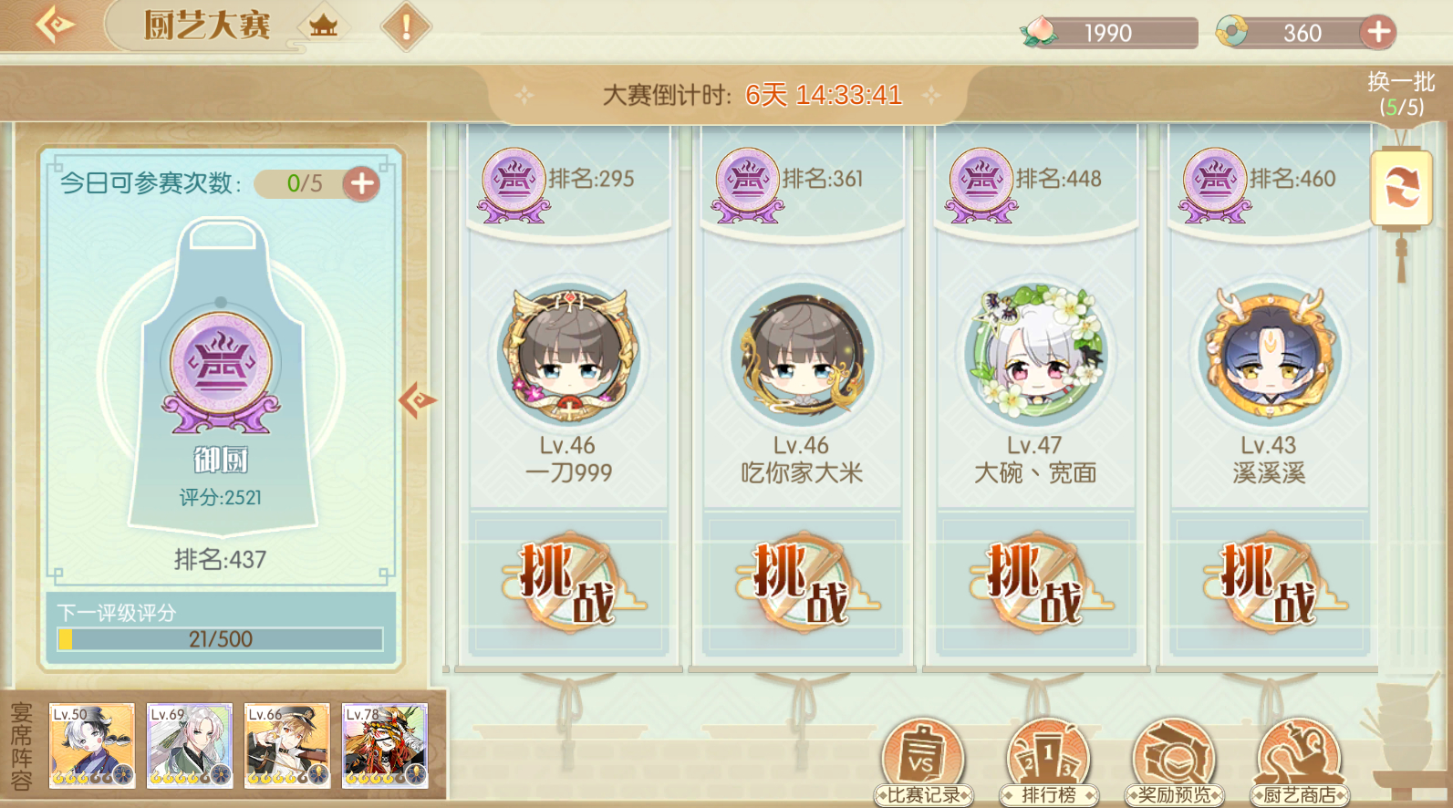 偶然抽了臭鱼和龙井,然后就确定了队伍。因为抽了两个龙井现在准备给龙井先四花,毕竟只是钱庄月卡党。。。。