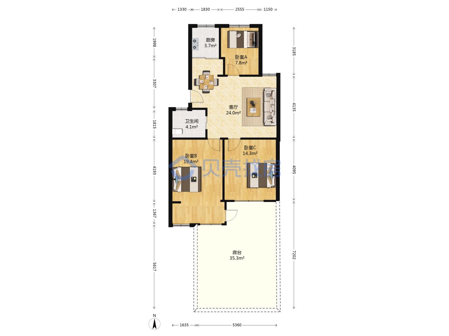 但是露台这么大,房间不够大啊