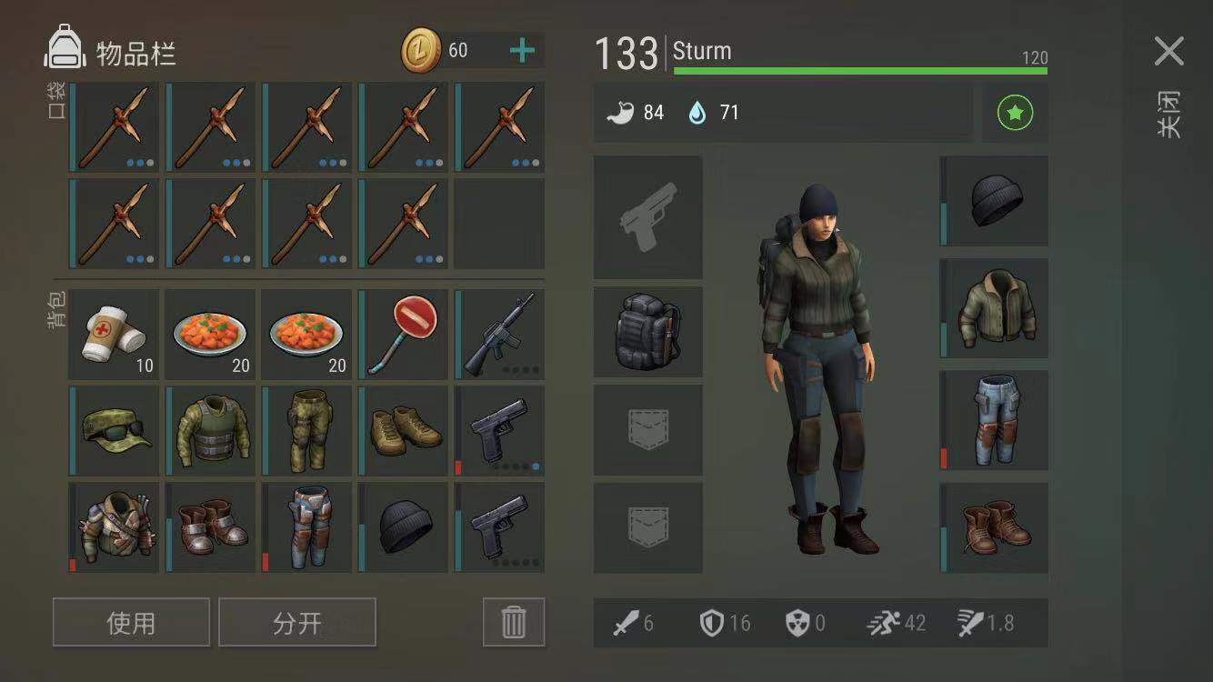 打完剩余,等于损耗8根2蓝1白木矛再多一丢丢。M16一枪未发,路牌一下没挥,身上那件满耐久的夹克是捡的,绷带出发的时候带了10个,用了两个,捡了4个。自愈是好技能,能省不少吃的。