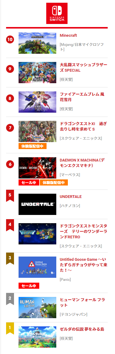 第三周未出圈!《机甲战魔》ESHOP下载版第六位!!