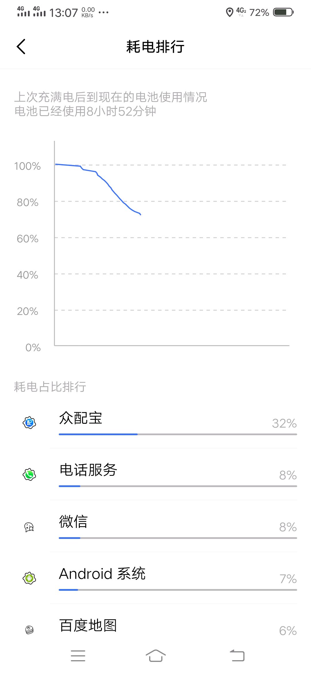 整天比比比比比耗电快,掉电快,尿崩!送了大半天快递,后台定位,打接电话,导航,一半电都用不到!!