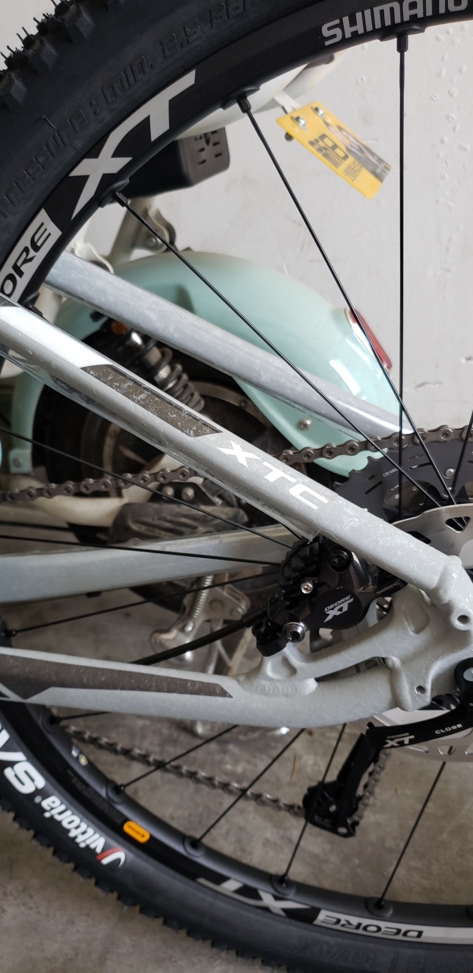 梦想基本改了差不多了 全套xt套件 可惜的是轮组不支持8100 只能8000中套加8100刹车了 mt800的刹车片真帅