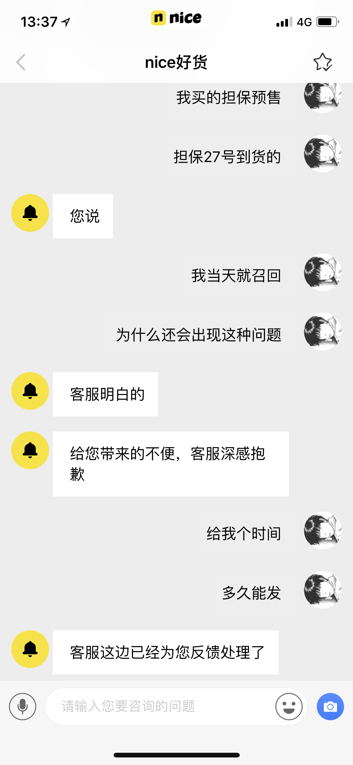 现在了没给我发 我准备维权了 破nice违约