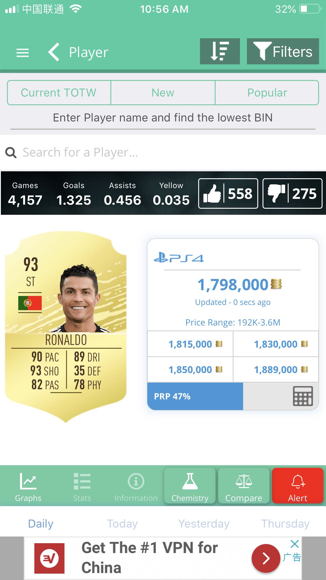 225万pc买的罗 跌倒心痛啊 都说罗这版本不好用 我觉得很好用啊 数据很棒 rival连场帽子戏法 只是头球不行 但这版本我角球就好像进过一个球 还是罗进的