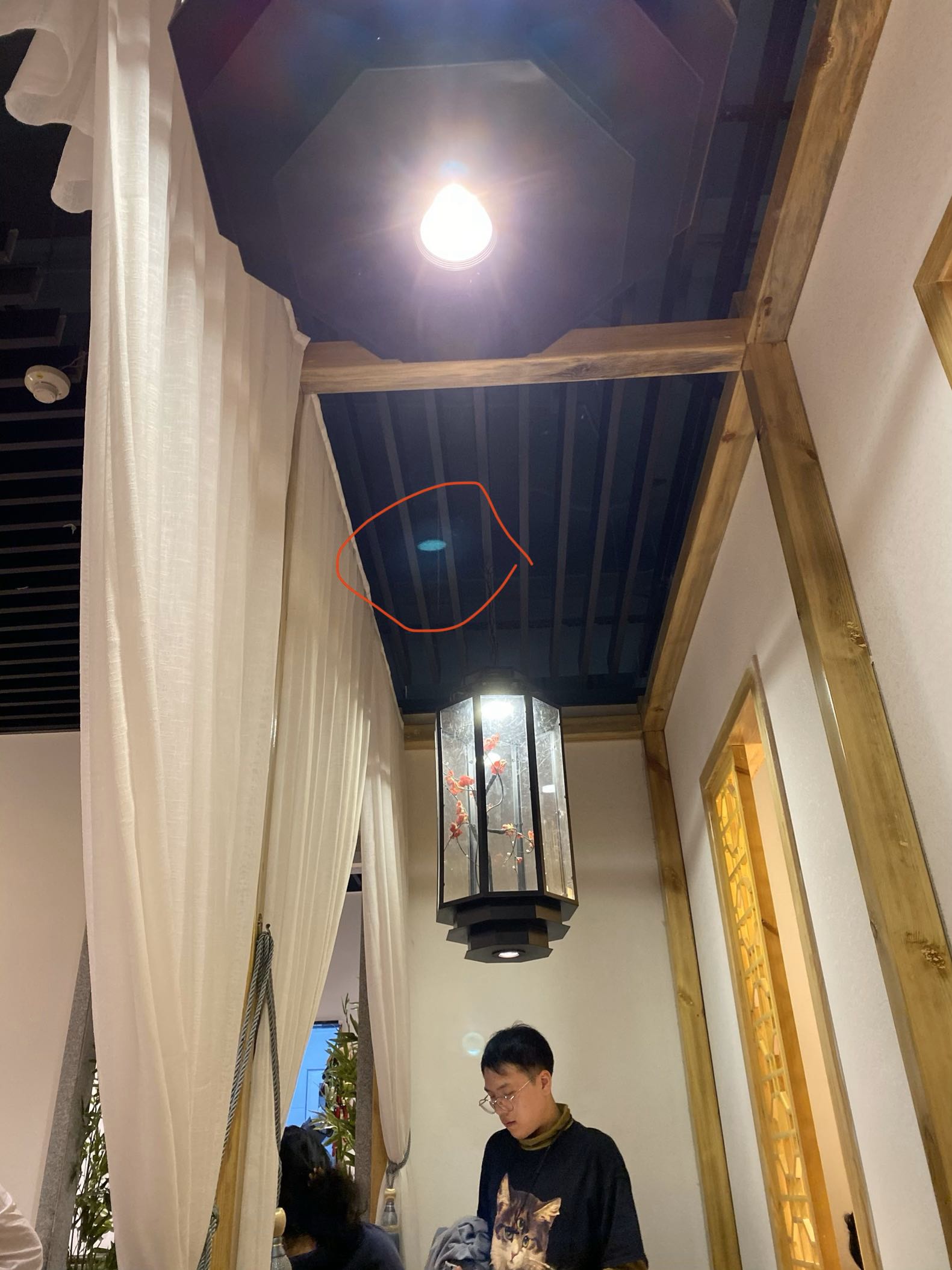 因为你对着灯拍的,你试试不拍灯