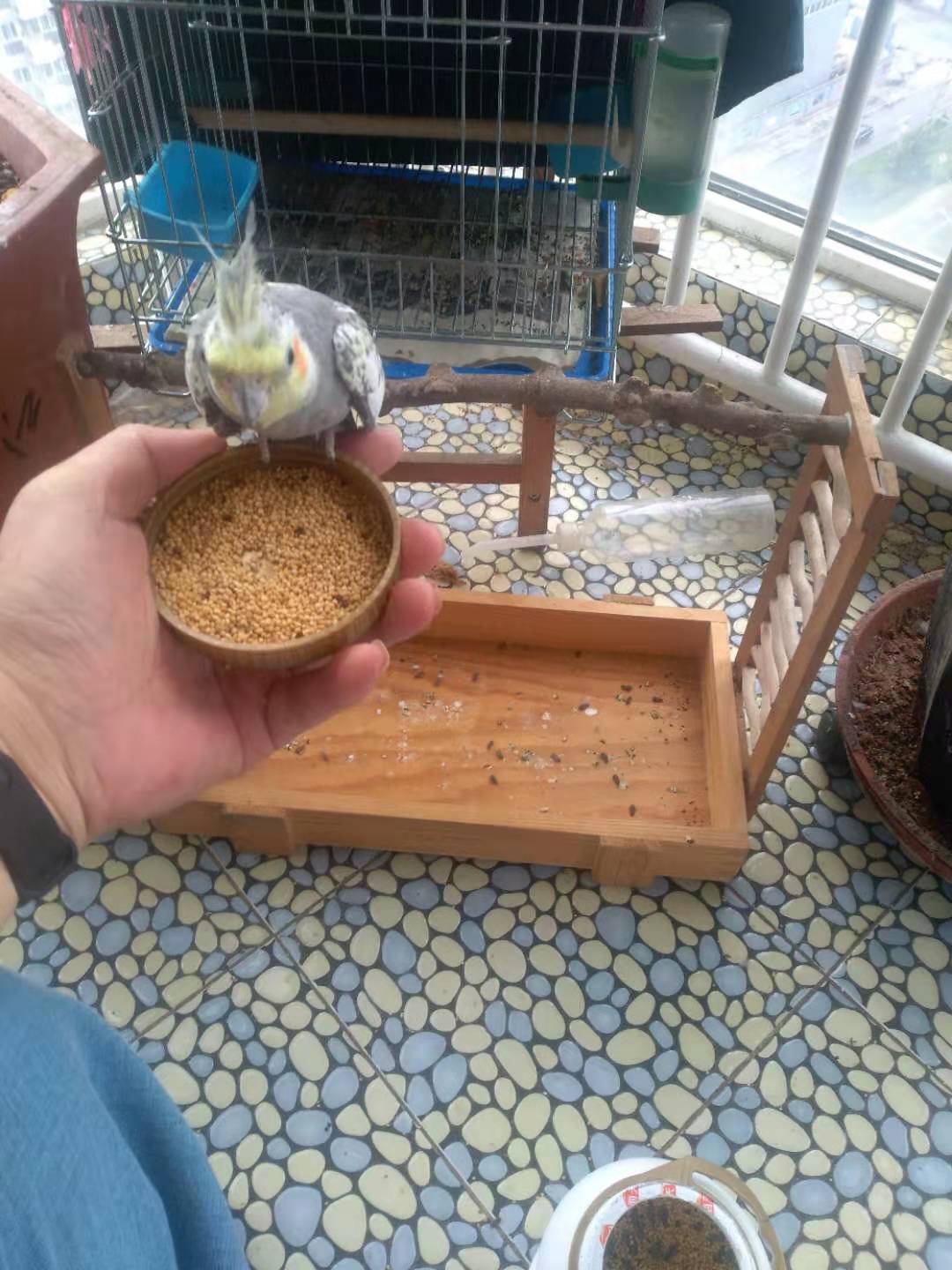 我养了两只玄凤鹦鹉和一只牡丹鹦鹉,见我怕的要命。怎么和它们亲近也不行,威逼利诱就是不行。于是就采取饿的办法,窝里不放食。看你还怕不怕我。现在好了,早上一看到我就拼命叫。还在窝里来回转。现在能上手吃食。可以吃饱了就又恢复原样。