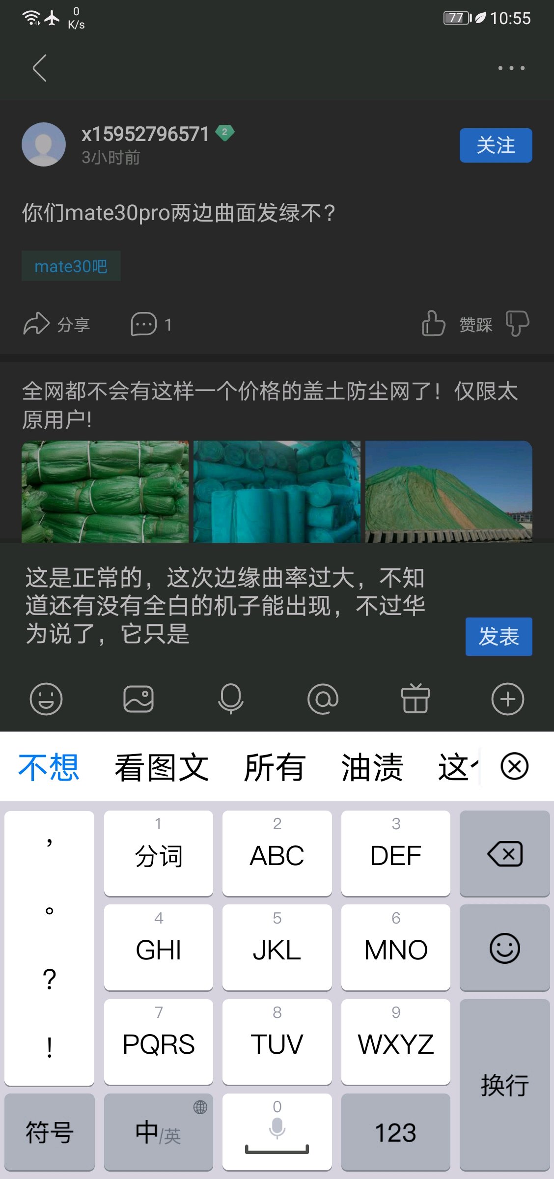你们mate30pro两边曲面发绿不?