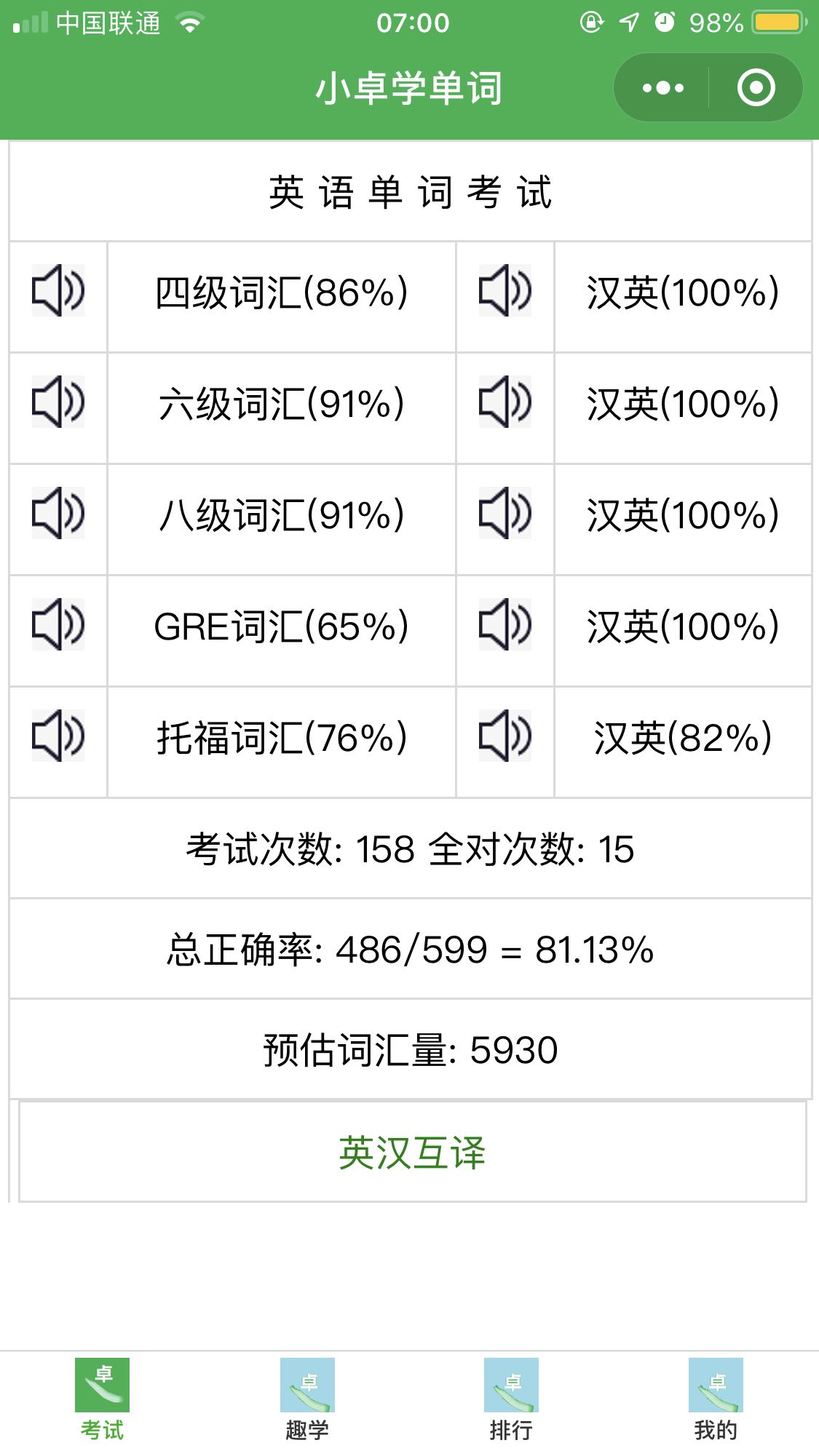 我刚刚开发了学英语的微信小程序 小卓学单词 大家可以试用一下