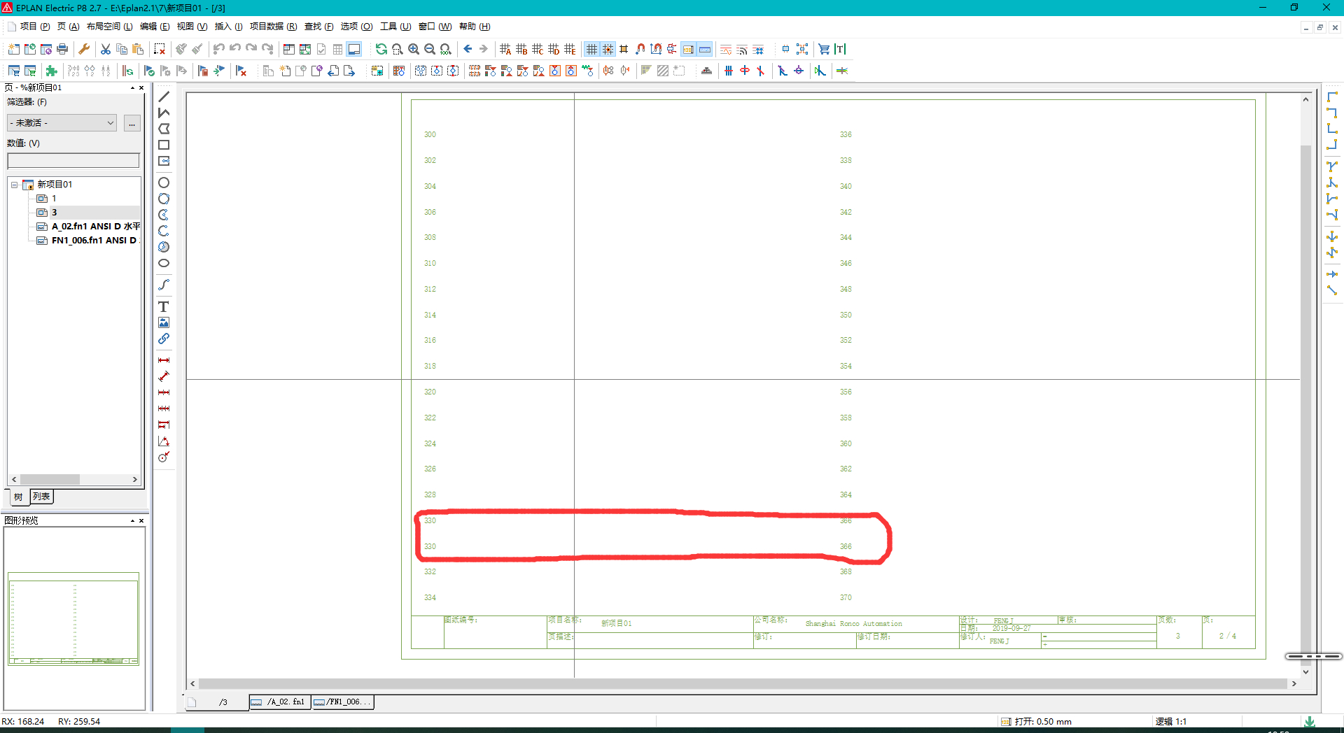 图框中,两列行号的倒数第三行第四行的行号数字是重复的(330重复一次,366重复一次),其他行都没有问题,这个图框行号为从300开始,只有双数,不是顺序递增的