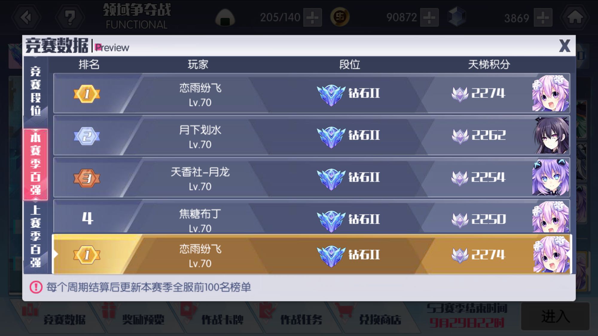 经过两个月的5点早起大作战,终于如愿登顶本赛季天梯第一,遗憾的是没能测试一下钻2的强度,由于这睿智的加分机制有时候还不得不卡分,这就必须关注别人的积分情况,登顶之旅异常艰难,准备下赛季咸鱼不在秃排位,在此祝各位国庆快乐