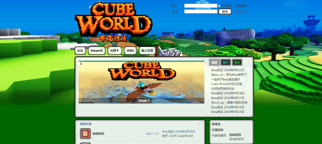 【中文社区】CubeWorld中文社区已开放注册