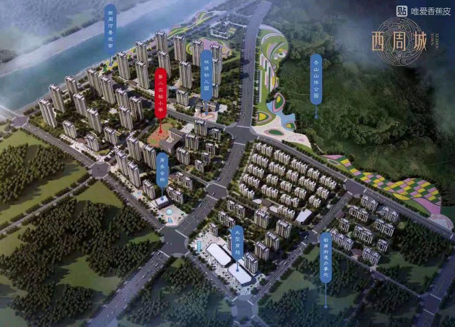 就是西周河东边新盖的楼盘,有大型超市,山体公园,楼盘是真的,正在盖,山体公园不知道是不是真的,要是真的以后跑步健身就有地方了