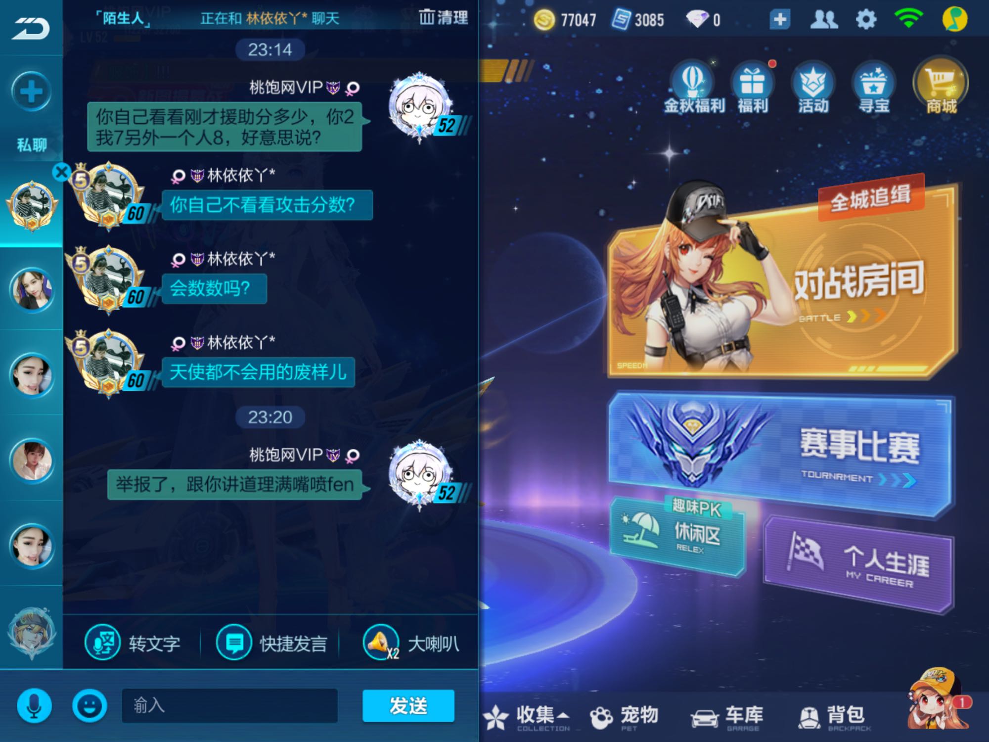 事情是这样的,很平常的一局道具跪了。我看到这个人在那里假惺惺的在哪里说太自私了,都自己用道具。我就看了下她的援助分。就多嘴说了一句,谁知道这货拿攻击分来说事,别惹小学生