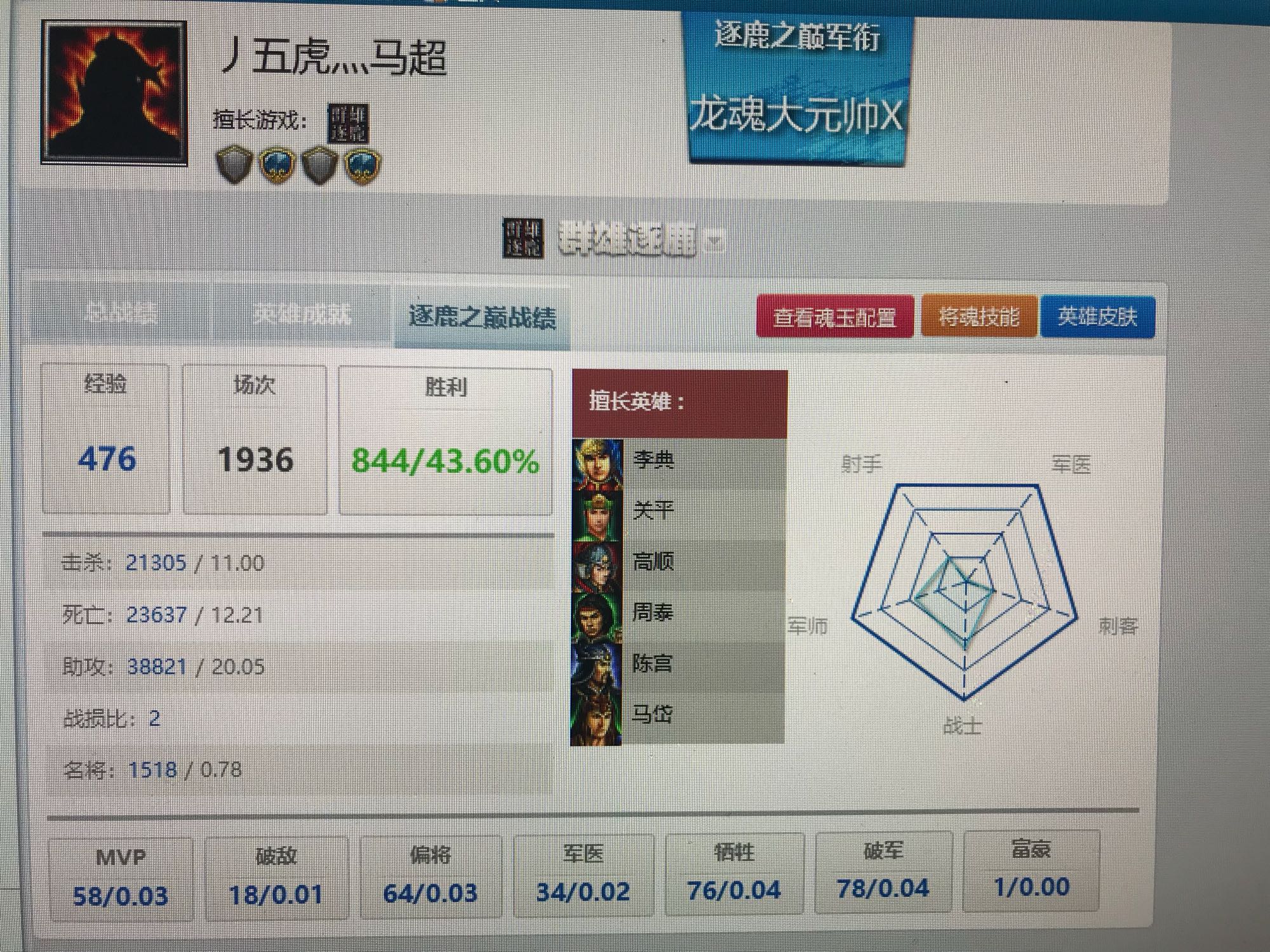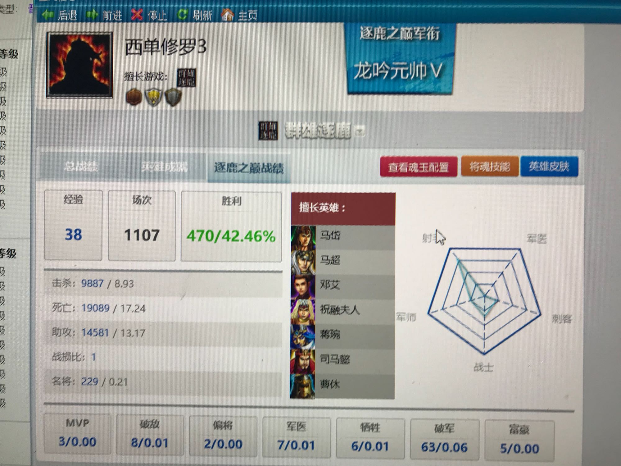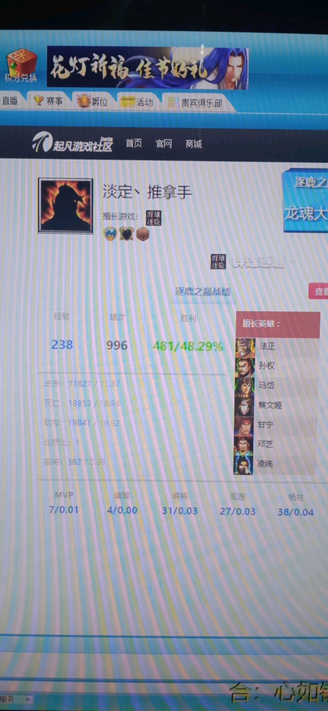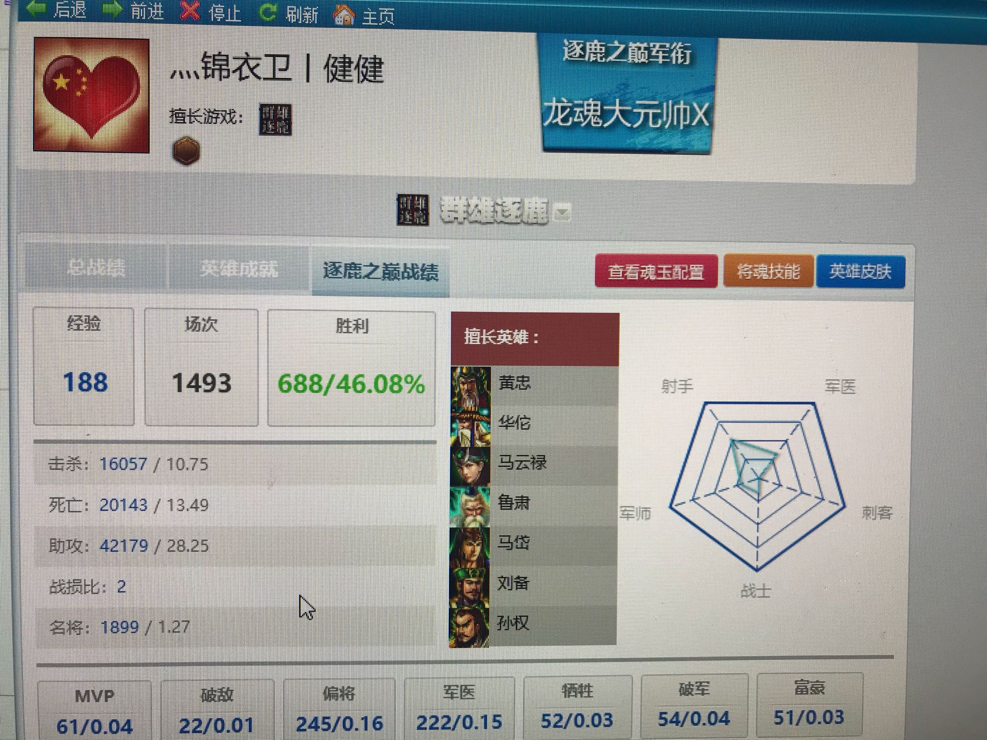 看看擅长英雄,几乎都有马岱法正这种二流英雄就知道是菜鸡无疑,有些人的战绩你打开一看几乎全是魏延左慈张角夏侯姜维高顺这种强势英雄,对比太明显