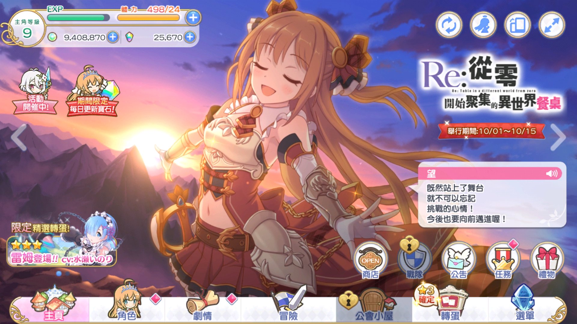 今天刚买了个初始号 抽了个蕾姆 接下来继续抽角色 还是等其他up池在抽? 主线刚刚推到1-10