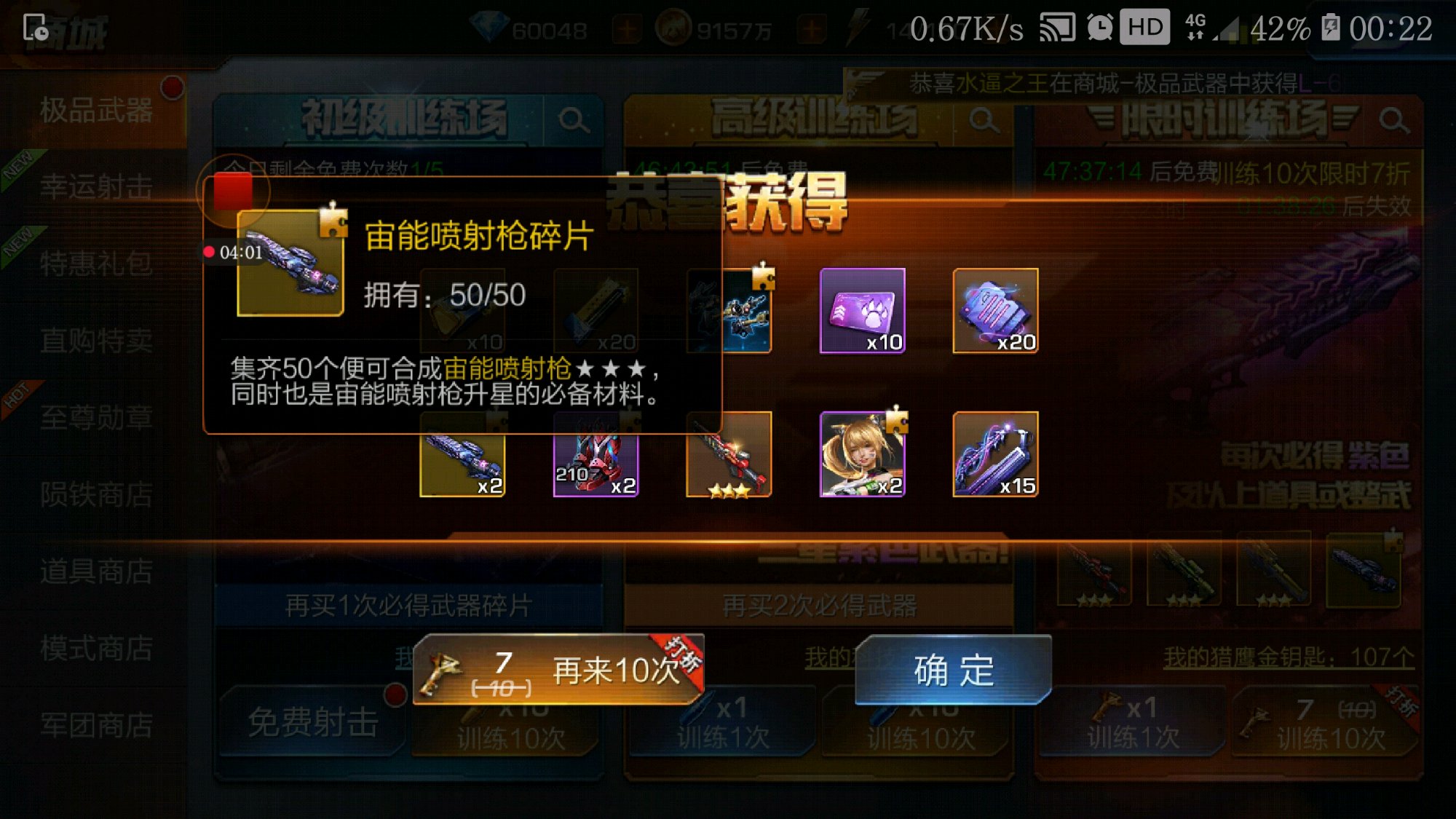 最少5-7次10连才出2金碎片哟
