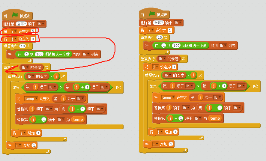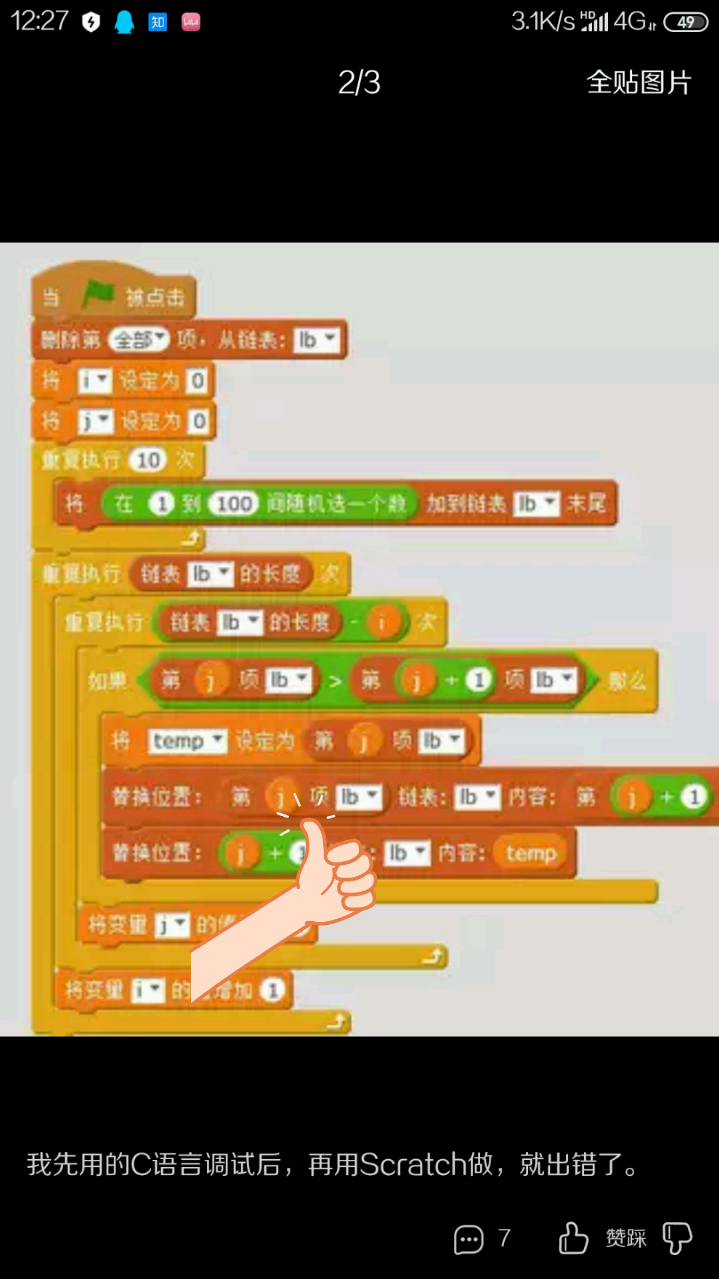 想咨询一个Scratch链表的问题:冒泡排序
