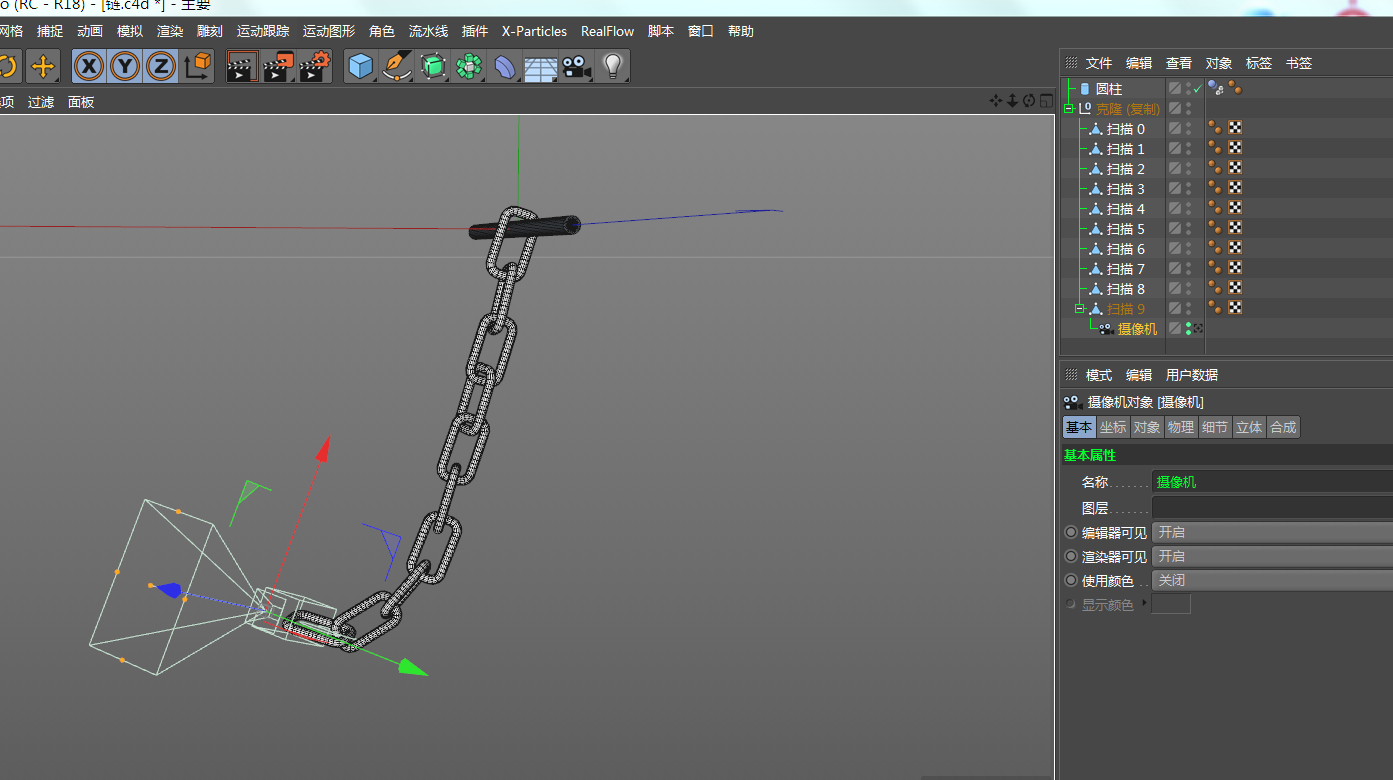 我用克隆做了锁链,加了刚体标签,圆柱体加了碰撞体标签,设了应用到子集和动态网格等选项开始锁链下落非常正常,悬挂在圆柱体上,末端落下,但落到底端时,锁链突然撑断了,半截掉下去了。 我目瞪口呆。