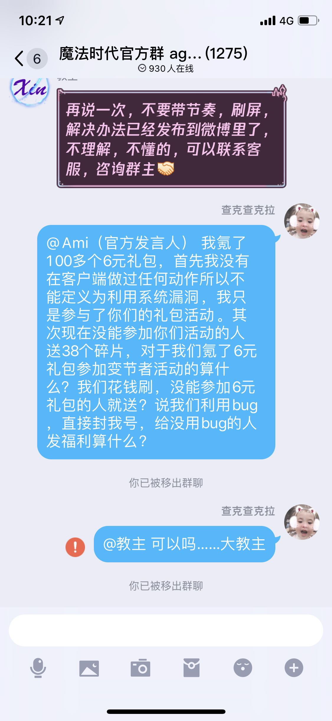 我氪了100多个6元礼包,首先我没有在客户端做过任何动作所以不能定义为利用系统漏洞,我只是参与了你们的礼包活动。其次现在没能参加你们活动的人送38个碎片,对于我们氪了6元礼包参加变节者活动的算什么?我们花钱刷,没能参加6元礼包的人就送?说我们利用bug,直接封我号,给没用bug的人发福利算什么?