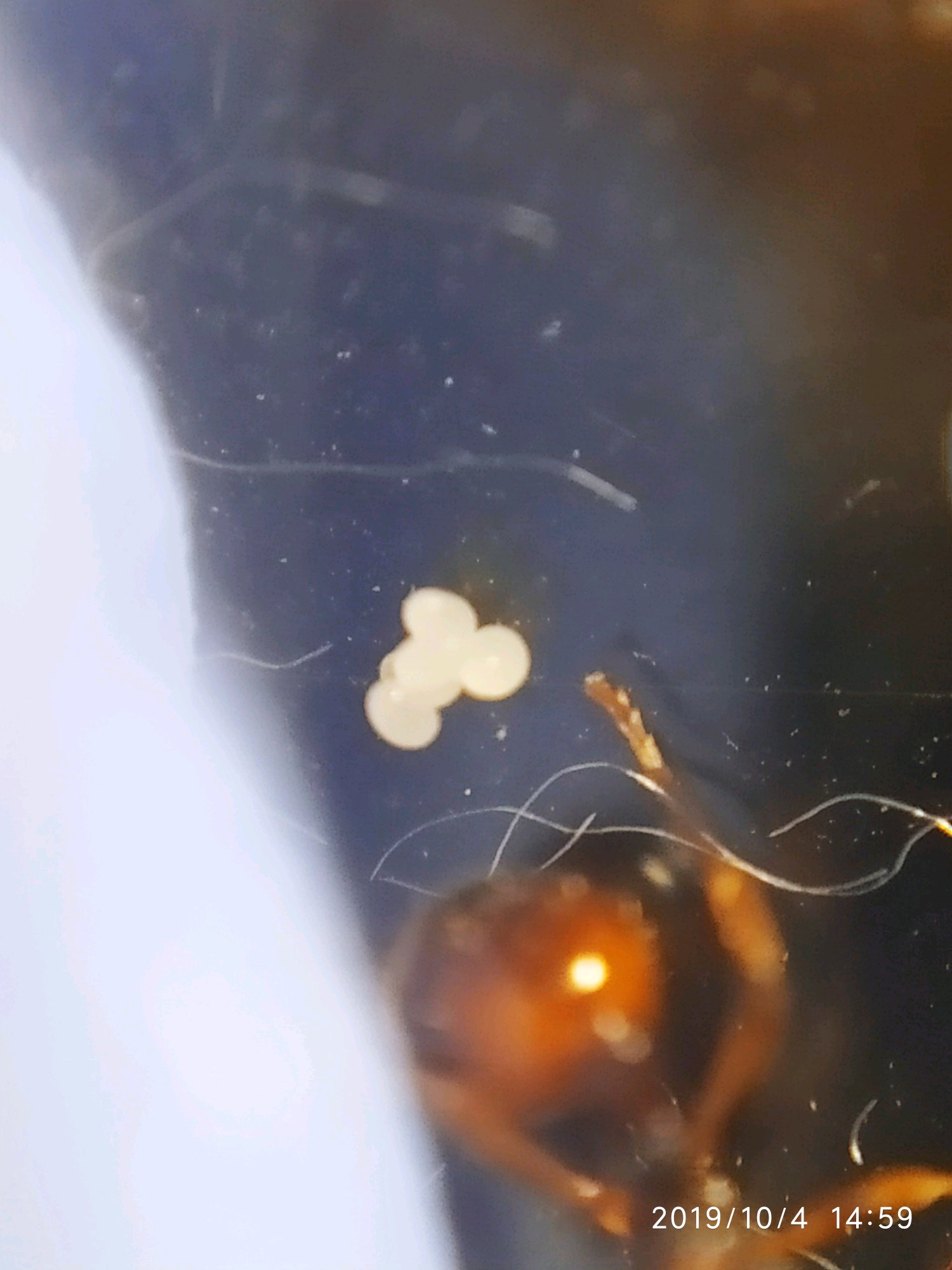 产卵速度挺快的,现在大概有二十颗卵左右。每隔几天就要喂食一次,饲养还是有点麻烦。食物是九龙虫和糖水。