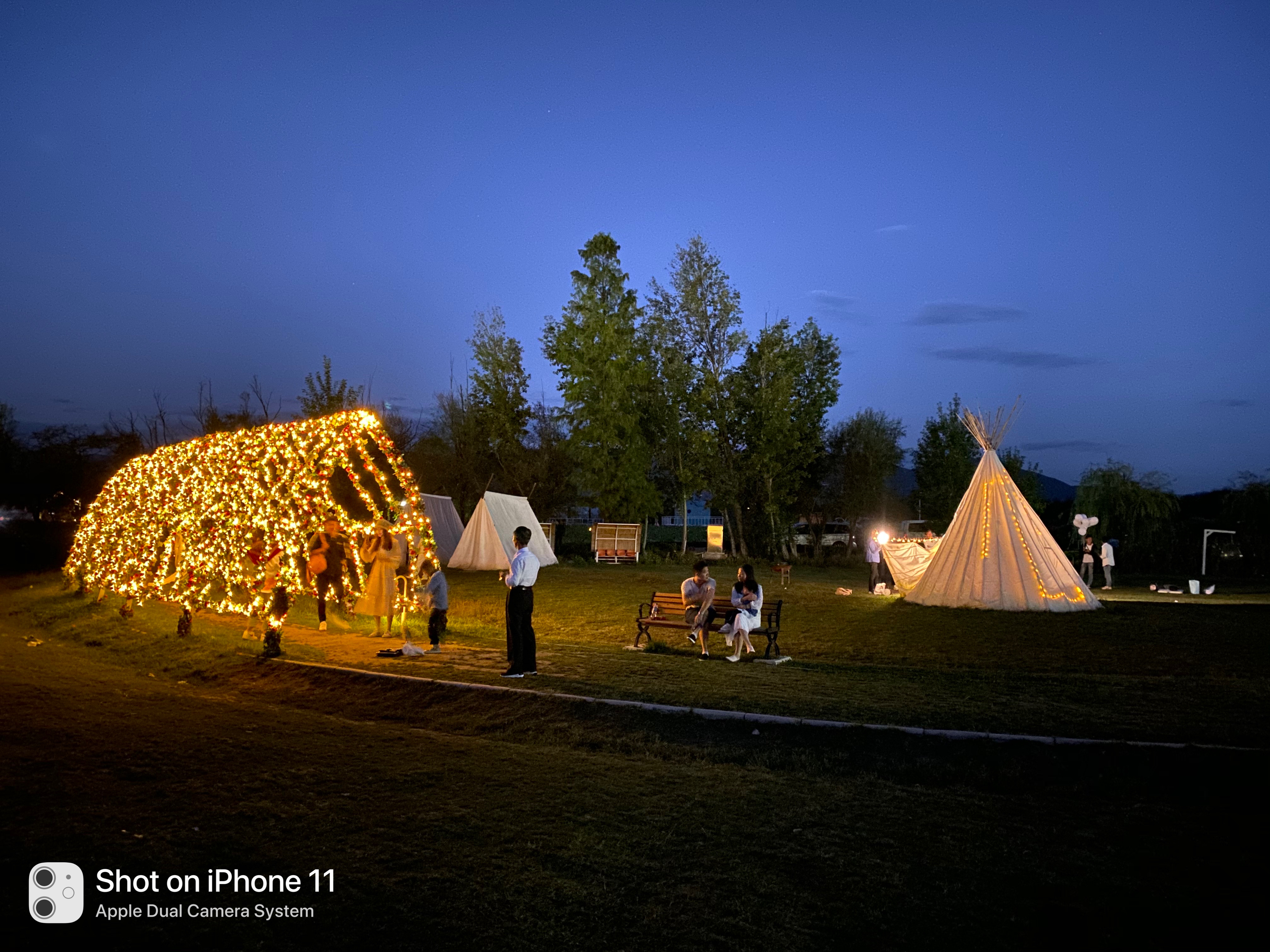 苹果第二张右边小帐篷处灯光没压住,过曝了。