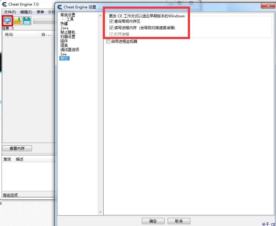 CE7.0版本,在其它设置-》读写进程内存 就会报错,请大神帮看看哪里没设置对