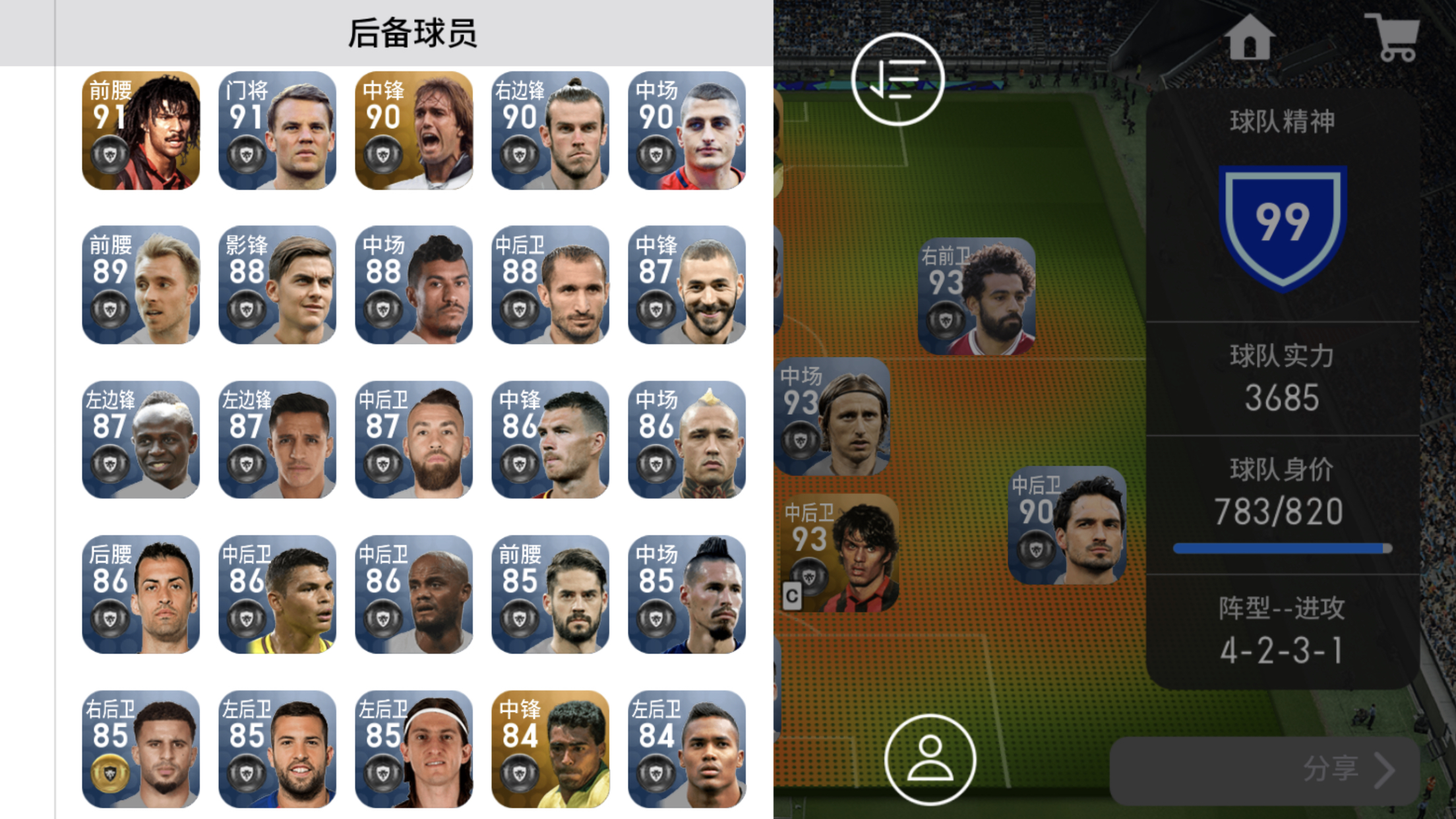 阵型用瓜迪奥拉,升库利巴利把拉莫斯换了,巴里奥斯打右后卫,胡梅打后腰,C罗和独狼打中锋,克圣打前腰,古力特换库鸟,然后再升一升布教授,把丁丁换掉,这样就无敌了