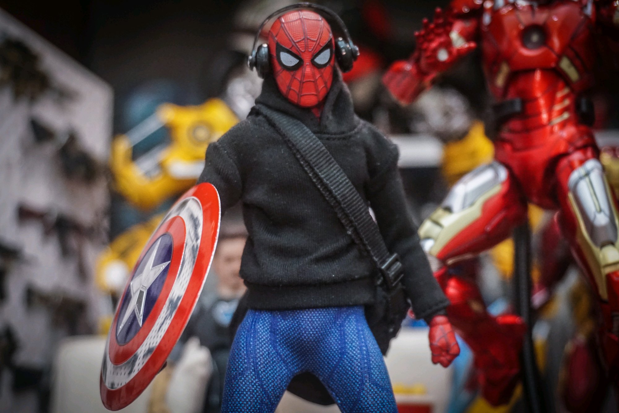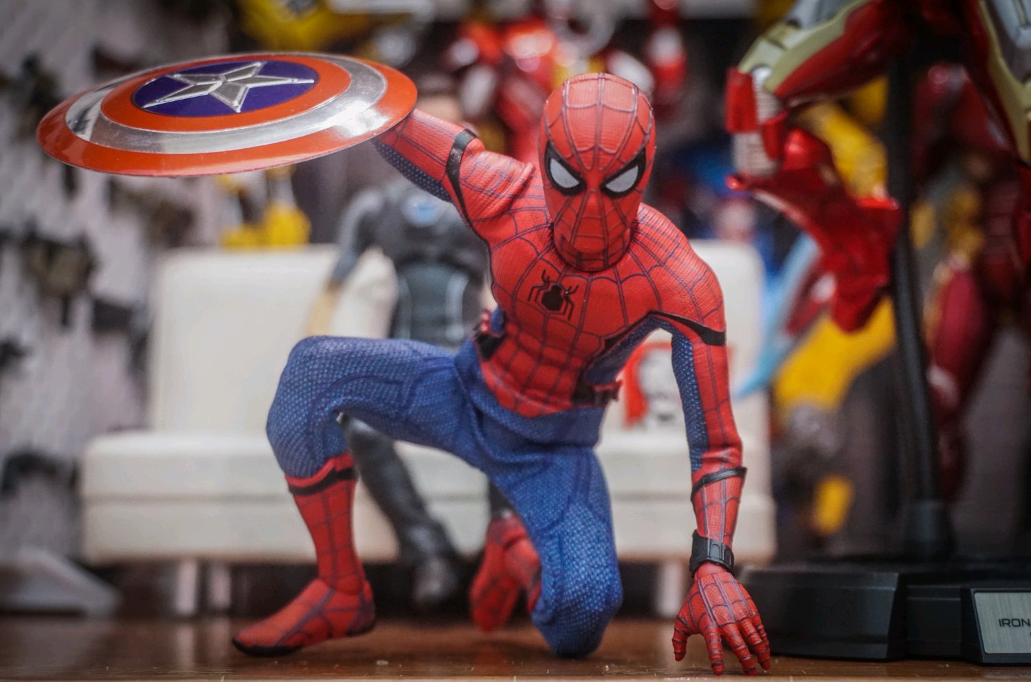 买了蜘蛛侠之后就一直想给他配个美队盾来还原内战场景,金属车贴和钥匙扣都尝试了。
