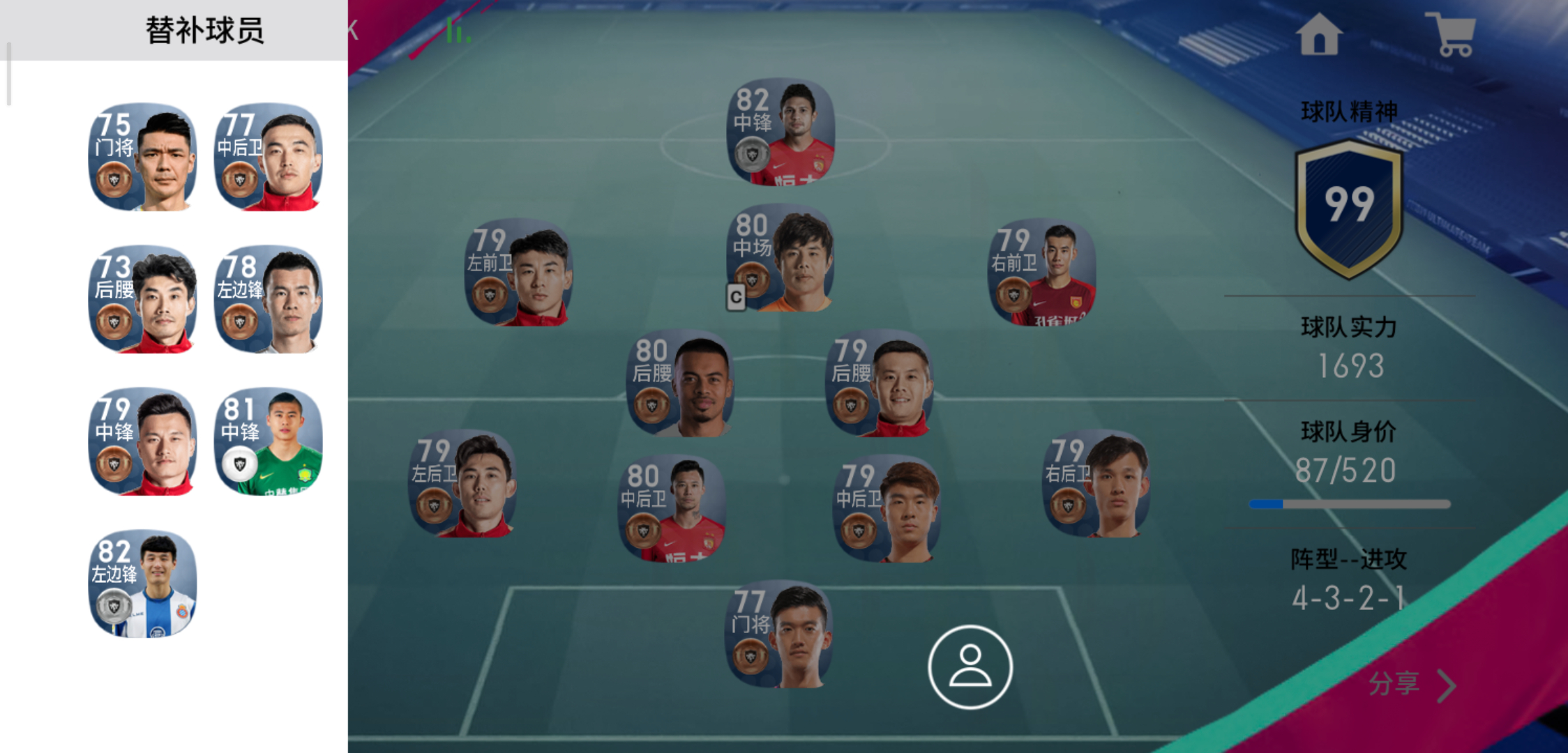 中后卫,张琳芃满级也不错,体能和技术都可以