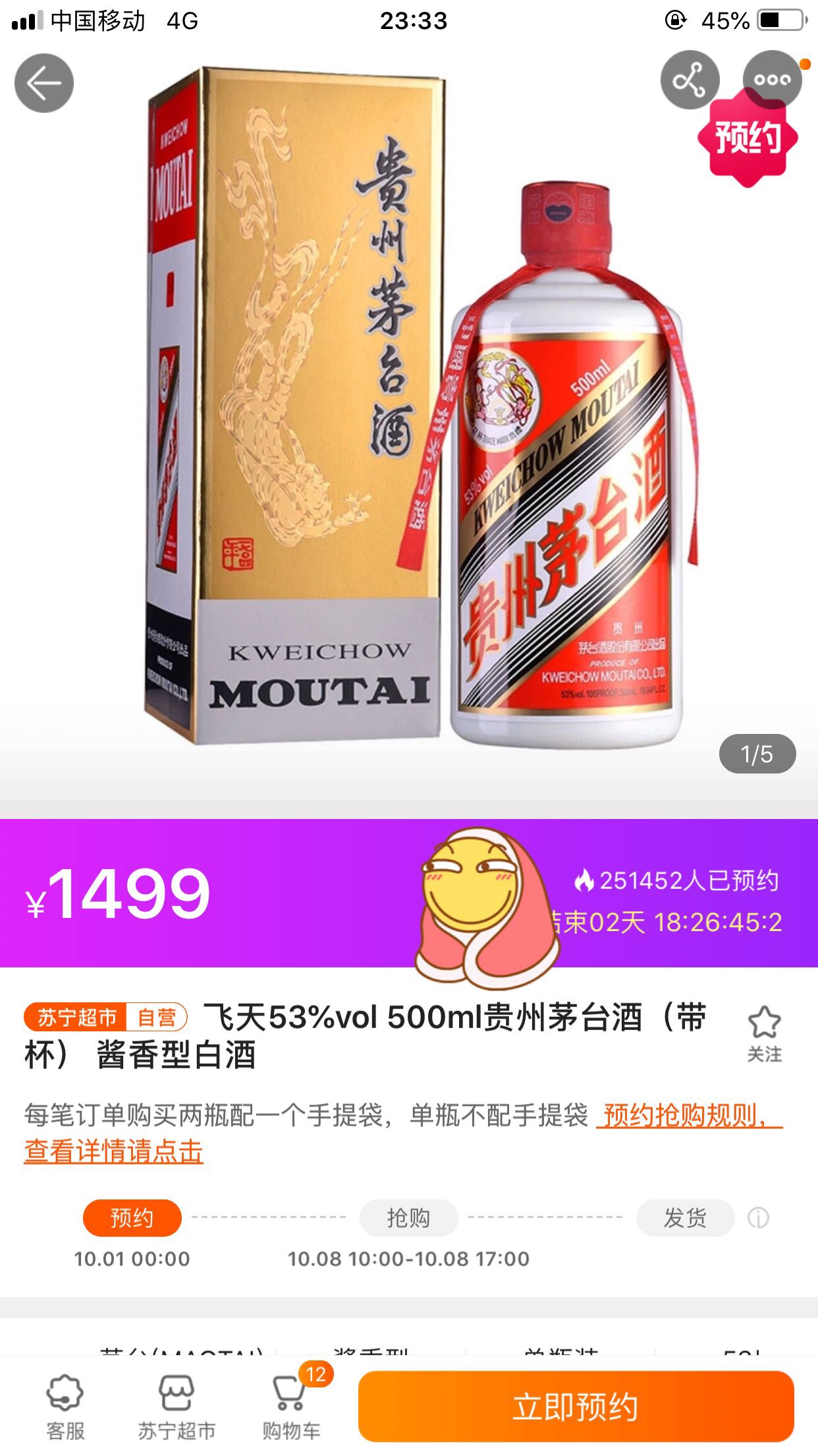 赖宁已经25万多人预约了,250000×2瓶=50万瓶,500000斤÷2000=250吨,已经超出配额了,也就意味着已经预约的人有一半是抢不到的,这还没把黄牛因素考虑在内,黑猫的没几天了,该继续的继续吧,只能赖宁也可能凉凉