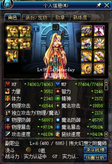 你这个称号好像该换换了 剩下的应该是属强换装和白金徽章的问题。