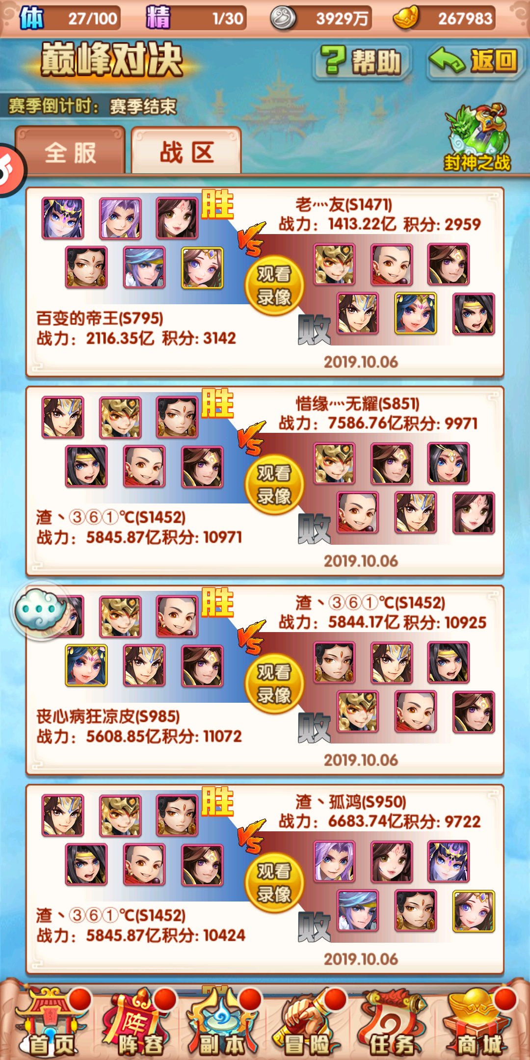 封神匹配制度太烂了,严重影响游戏体验,一帮两千亿死号占低级坑,这几次封神,我就没上过人仙