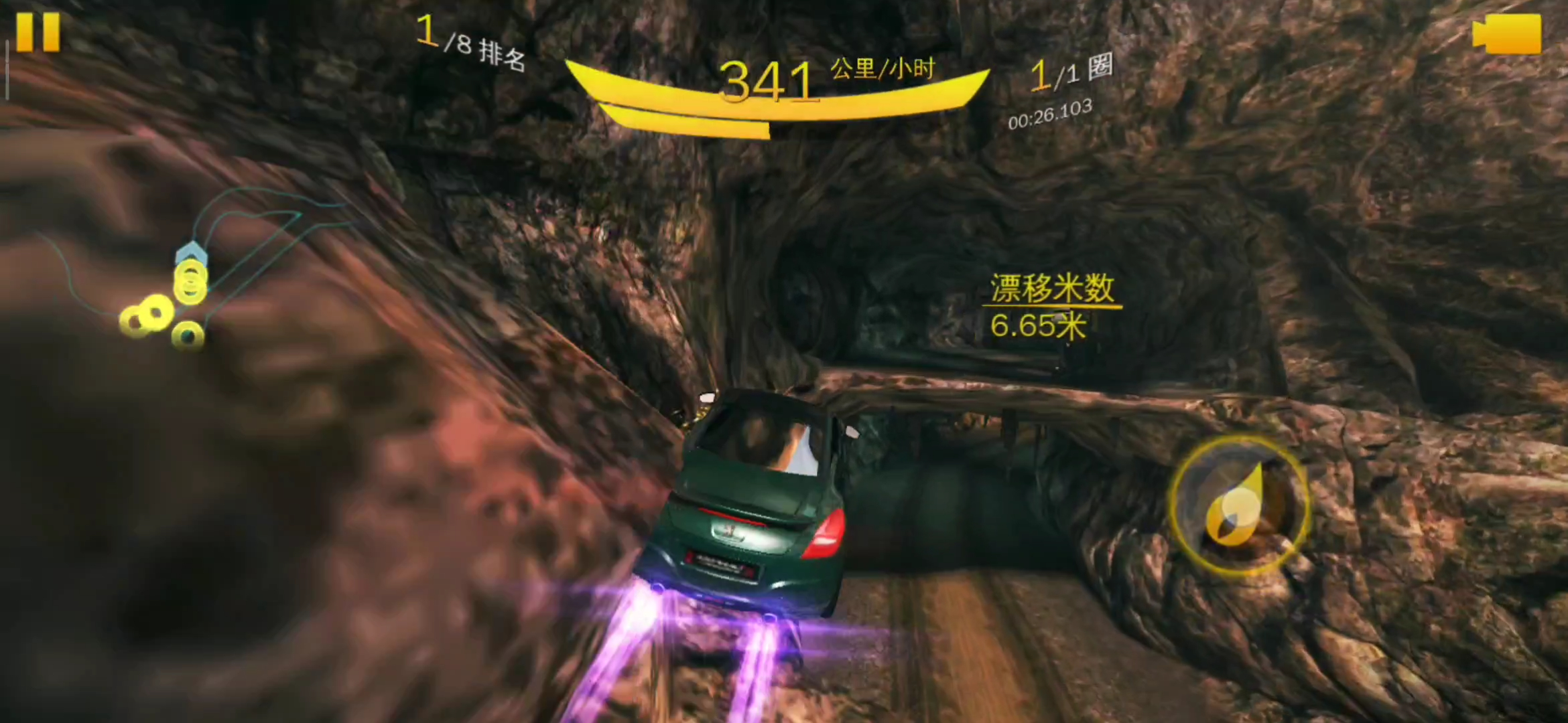 这个跑法最佳成绩是把空速卡到了340,磕墙只要对准墙上的这个位置,成功率都挺高的,掉速多少就得看磕得多准了