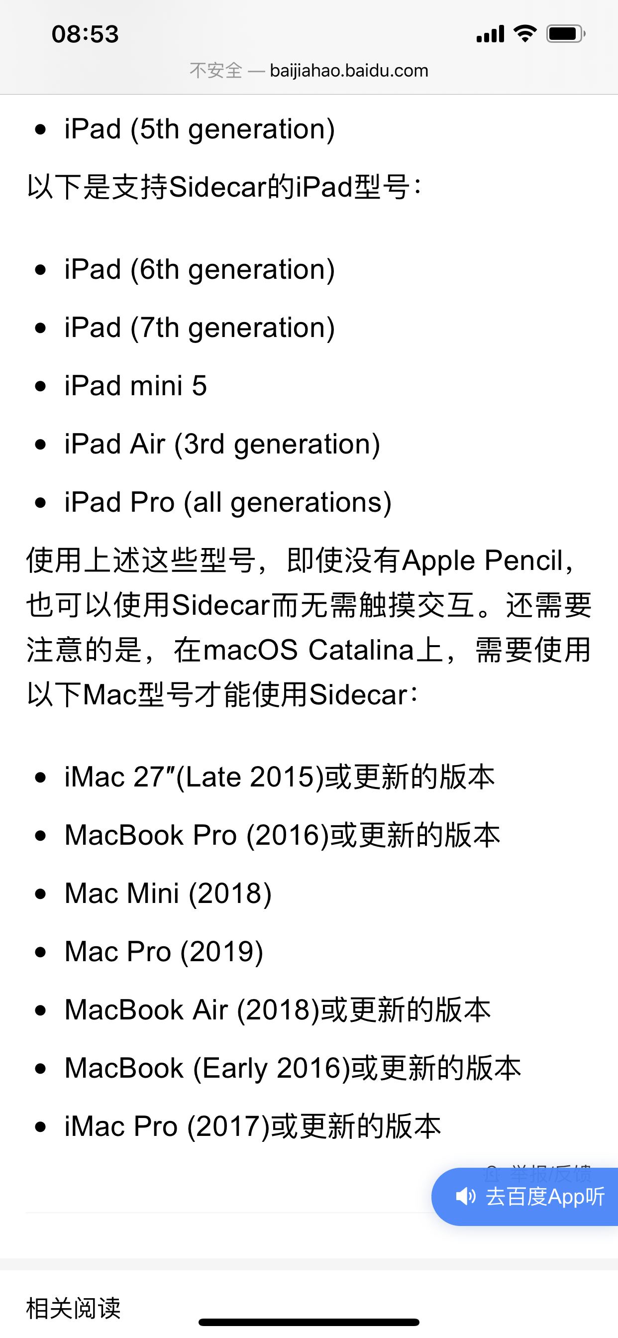 支持sidecar功能的iPad和Mac