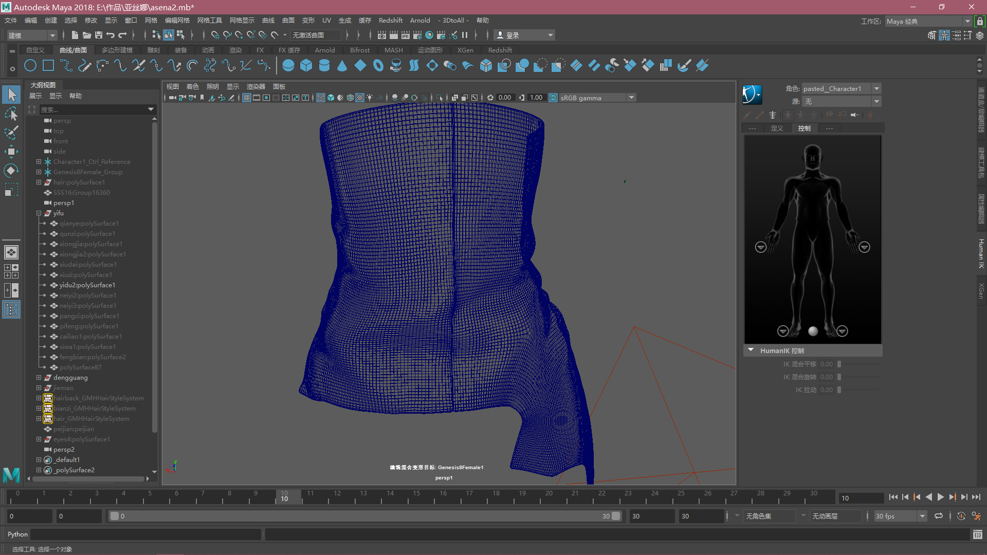 衣服是双层的所以显示有两层,眼球也有外层和里层的,衣服是拓扑完了以后再细分了一次!所以特别密