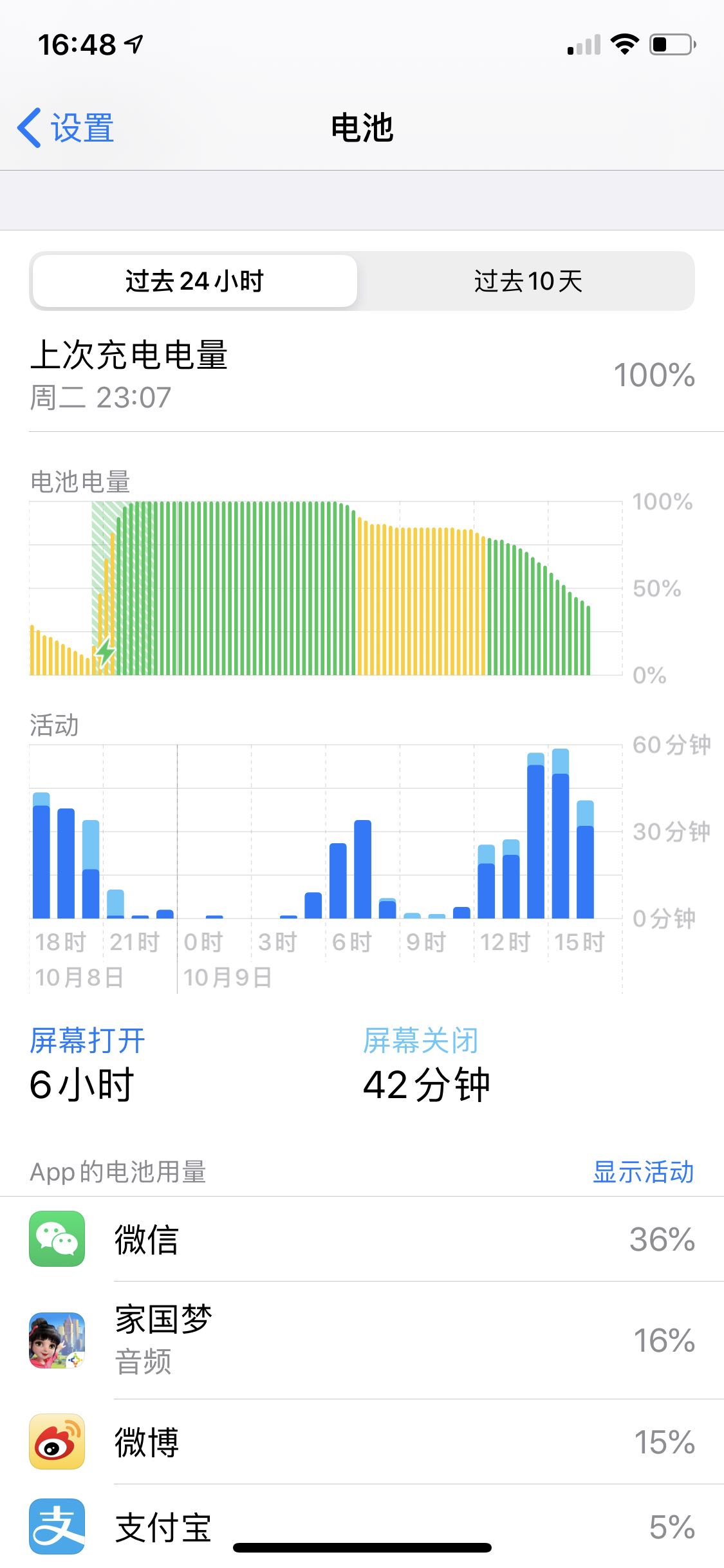 总共亮屏幕九十分钟。掉了40的电。