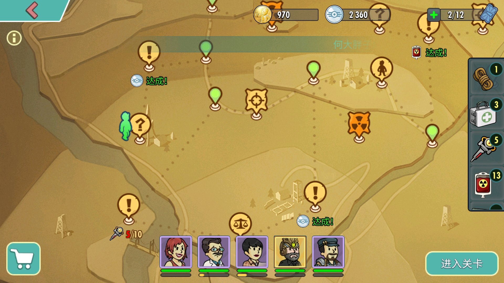这时候瓶盖不缺了,每天中午12点,下午6点,晚上21点,是更新势力商店的时间,这时候用瓶盖购买白银木板水晶之类的物品。辅助升级装备不要买(浪费瓶盖)这时候你的瓶盖就会非常缺了。很多人都说雷达室必须弄食物,哪怕用可乐刷,其实瓶盖也特别缺,食物你总有满级的时候,但是升级材料你会很缺。雷达八小时的都可以占领,其他建议重新探索。早上七点一次,下午三点一次,晚上十一点一次。至于每天掠夺的食物,只在开区前七天需要特别注意,后面基本达到三万左右就可以掠夺了,去在意这个还不如多花点时间赚钱。开服前七天掠夺资源1级大型6万可以掠夺0.2,也就是1.2万,中型是大型的一半,小型是中型的一半,带白边稀有矿是大型的二分之三,大型雷达每上升一级,增加两万基础产量。