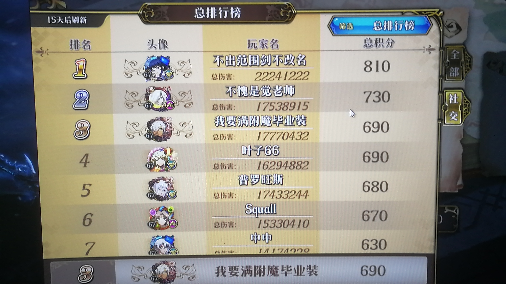 命运挑战成就全拿 挑战无压力 时空SSS52回合常见 裂缝满星满成就 世界boss前50。九个月的时钟服务 六个月的勇气服务 就这些氪金。从不肝 辣鸡兵营团里都知道