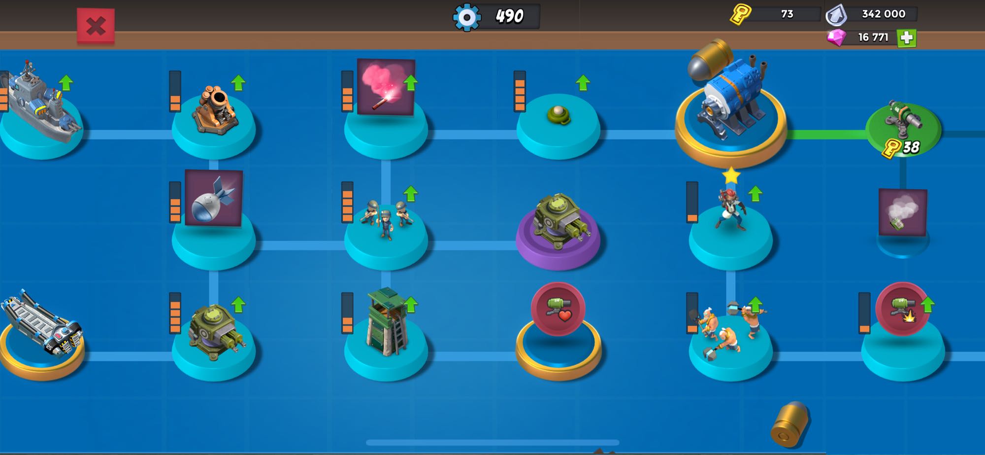 反正你都走歪了,先升机枪吧,然后再升老头,地雷先不用管了,基本会被伊娃和步兵弄掉,威胁不了老头。