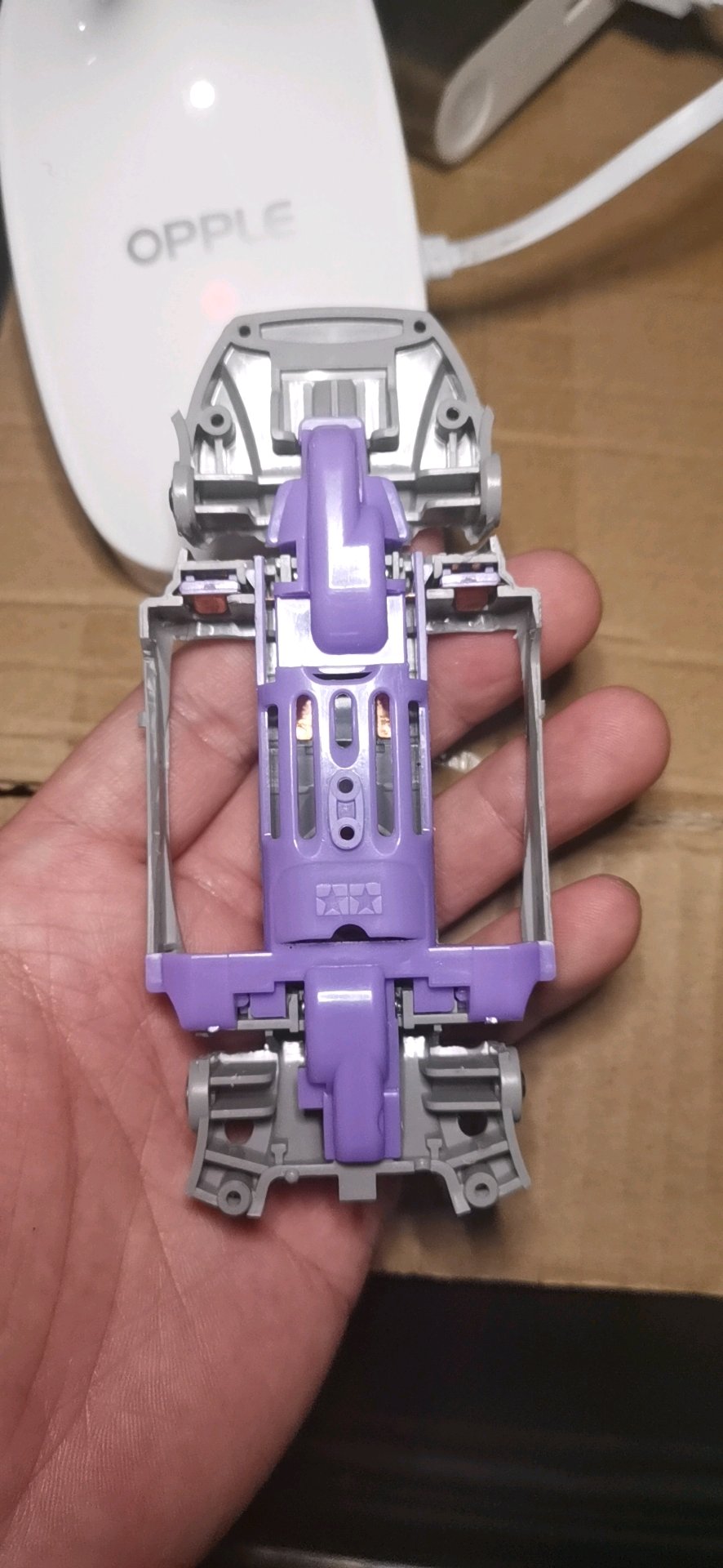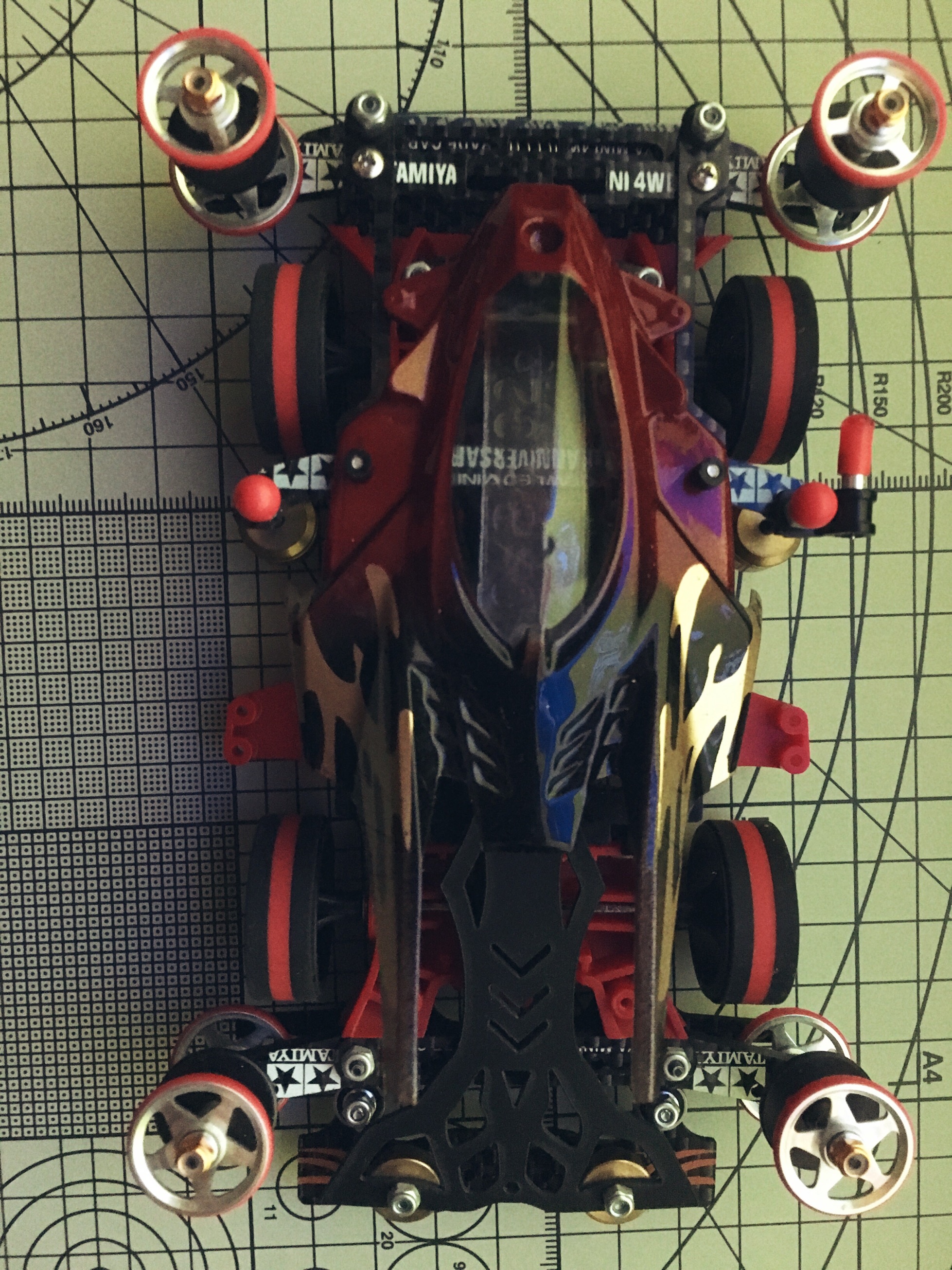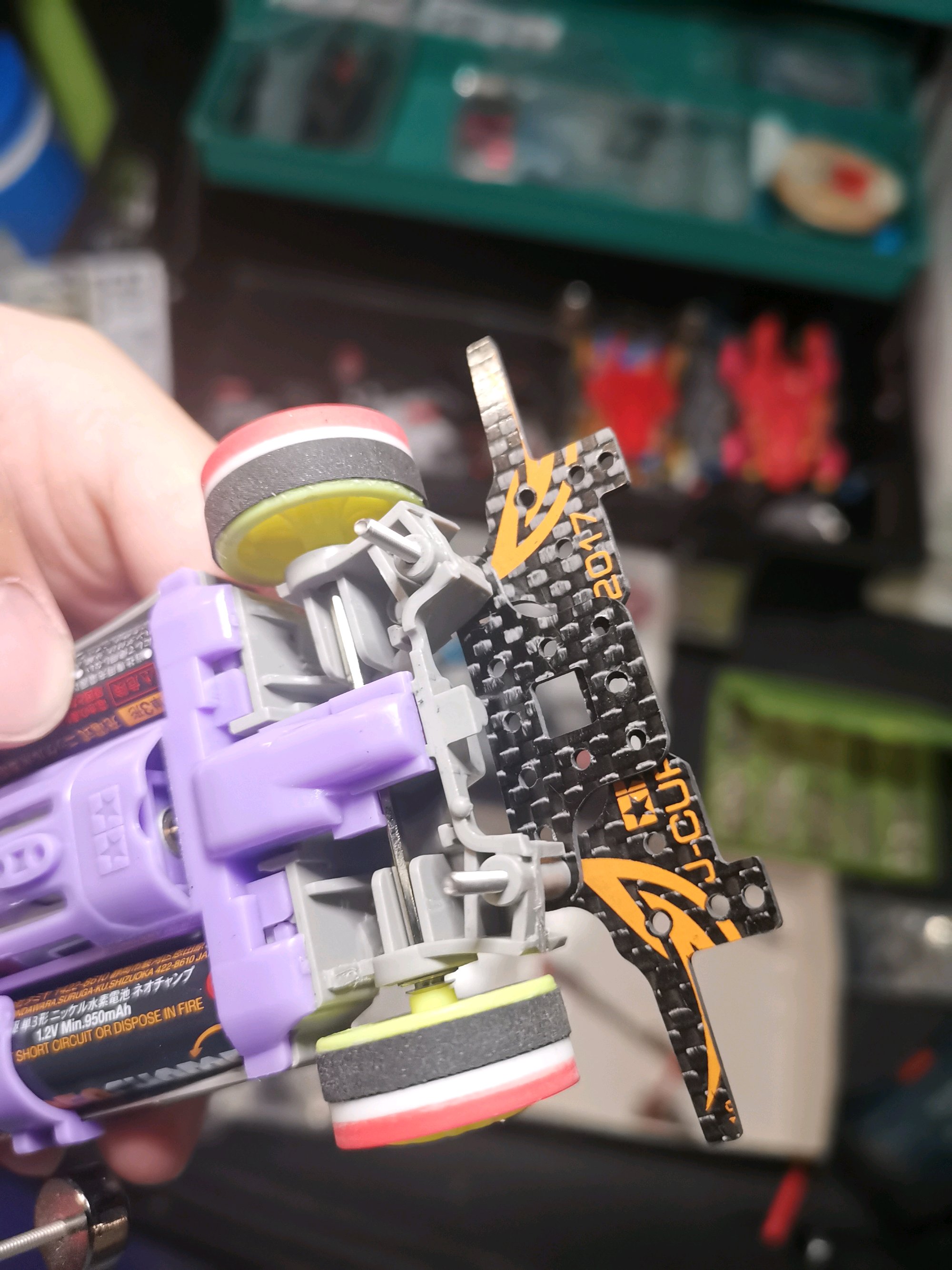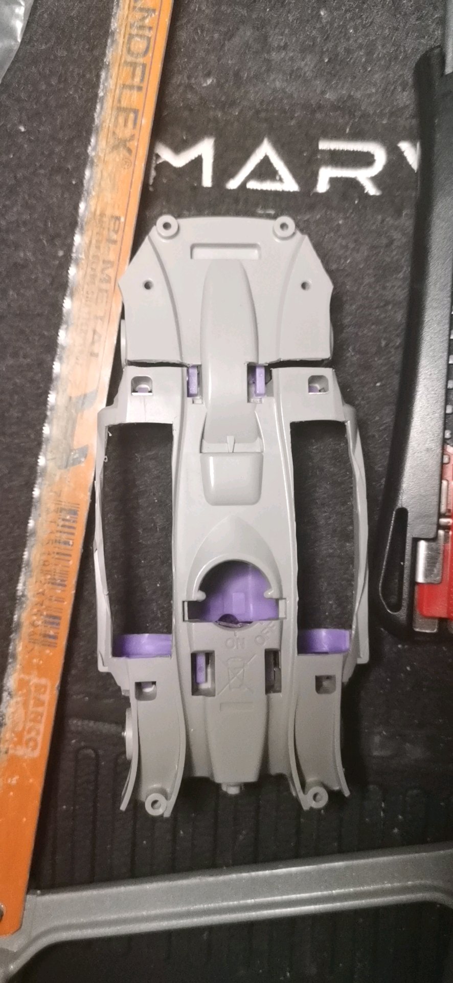 这是半年前入的第一台MA,硬头硬尾的跑了几次,导轮和螺丝磕的七扭八歪,因此决定低成本手工稍微改造下。首先是打孔镂空电池仓,切头切尾切中翼,笔刀打磨修边。
