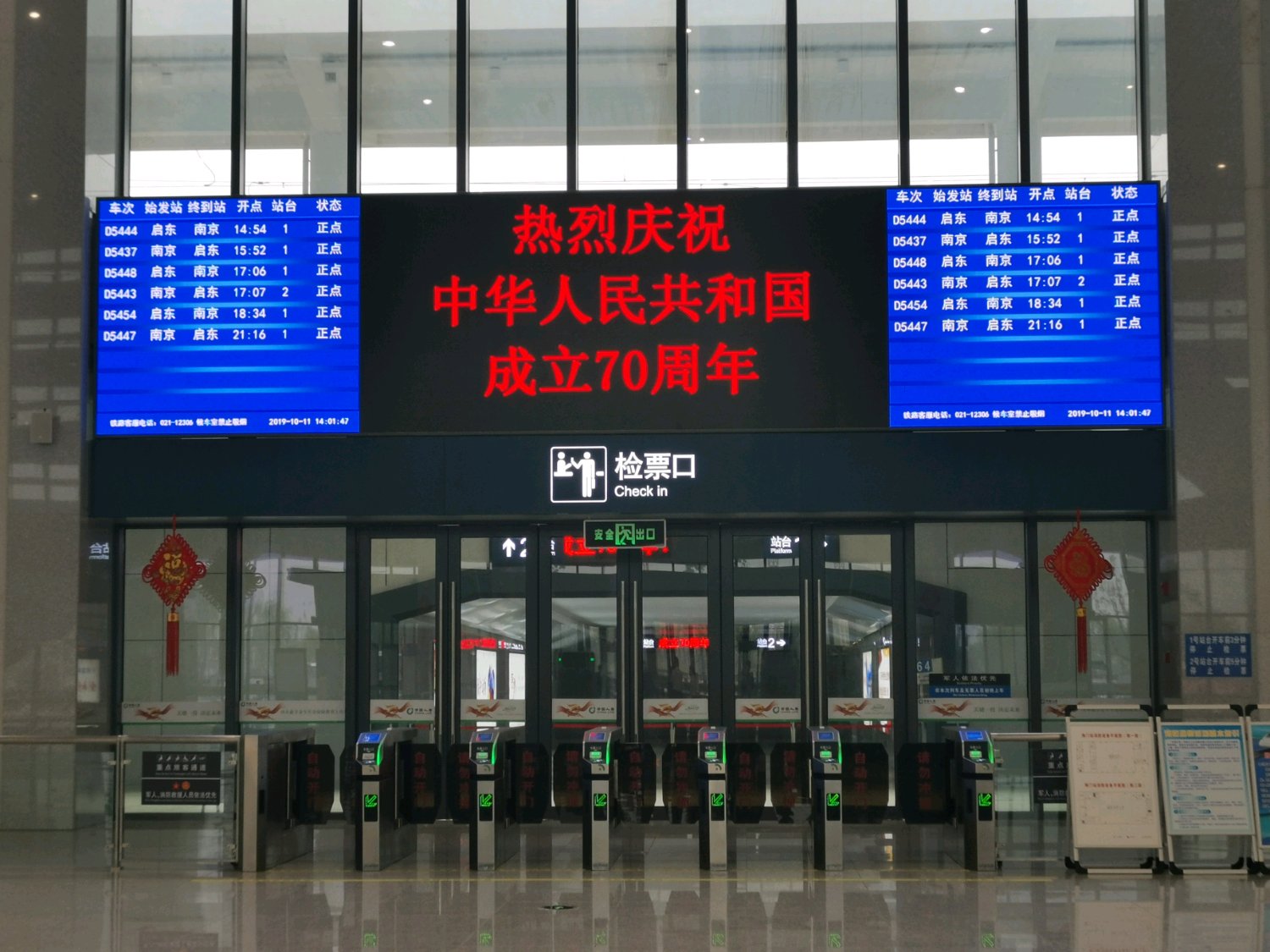晚点一分钟到达海门站,站台也没有显示车次,可能时间过了