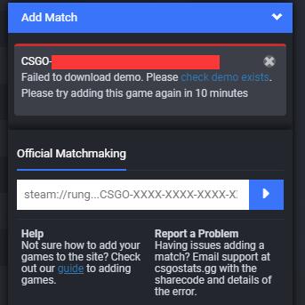 csgo demos manager用分享code也下不了直接说连接已经过期或者已经下载了,但是明明是新鲜的DEMO和没有下载都这么提示。尝试改变用加速器一类的或换网络也不行。甚至用妖妖舞也不行....