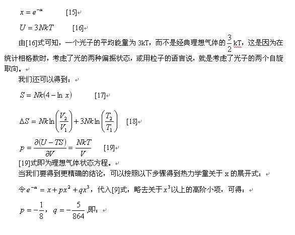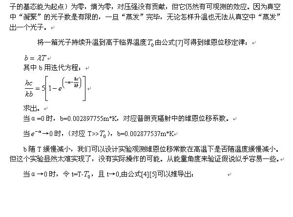 光子气体的体积、能量不变,这里大胆引入了一个新的假设,就是认为光子数也不变,因此是微正则系综,当然,这很可能是错的。