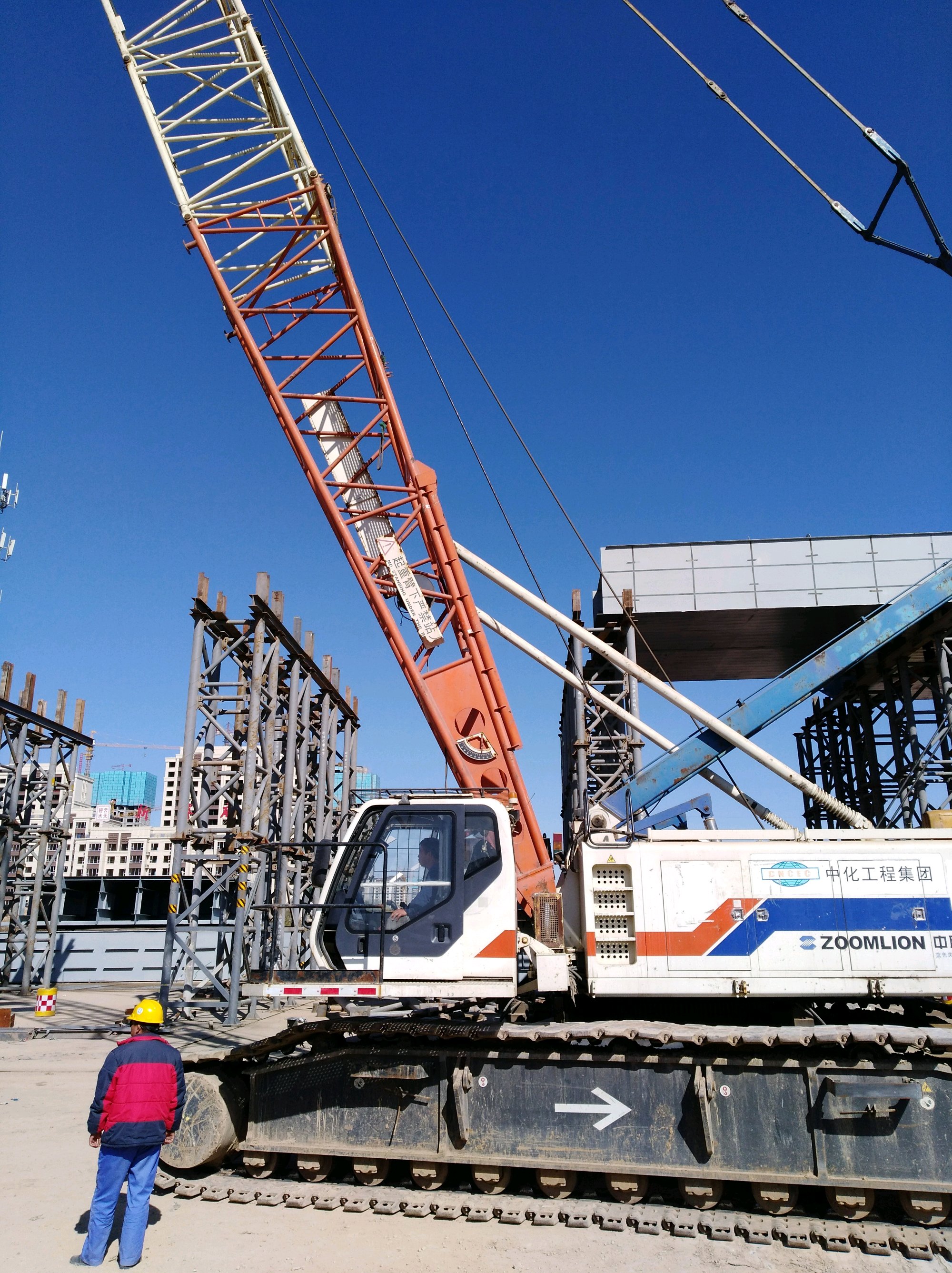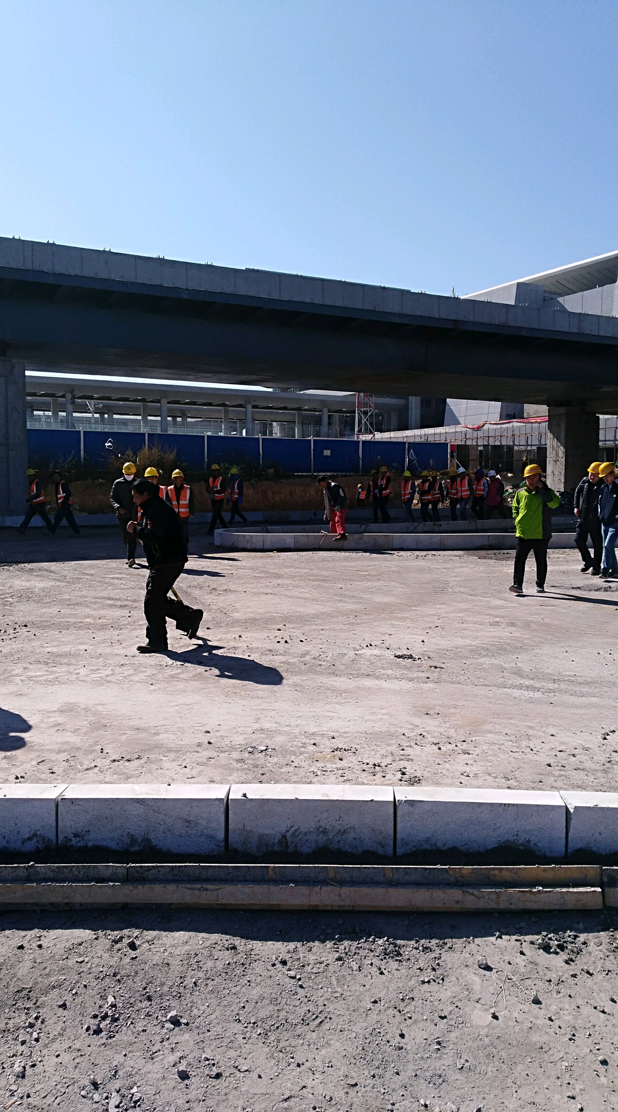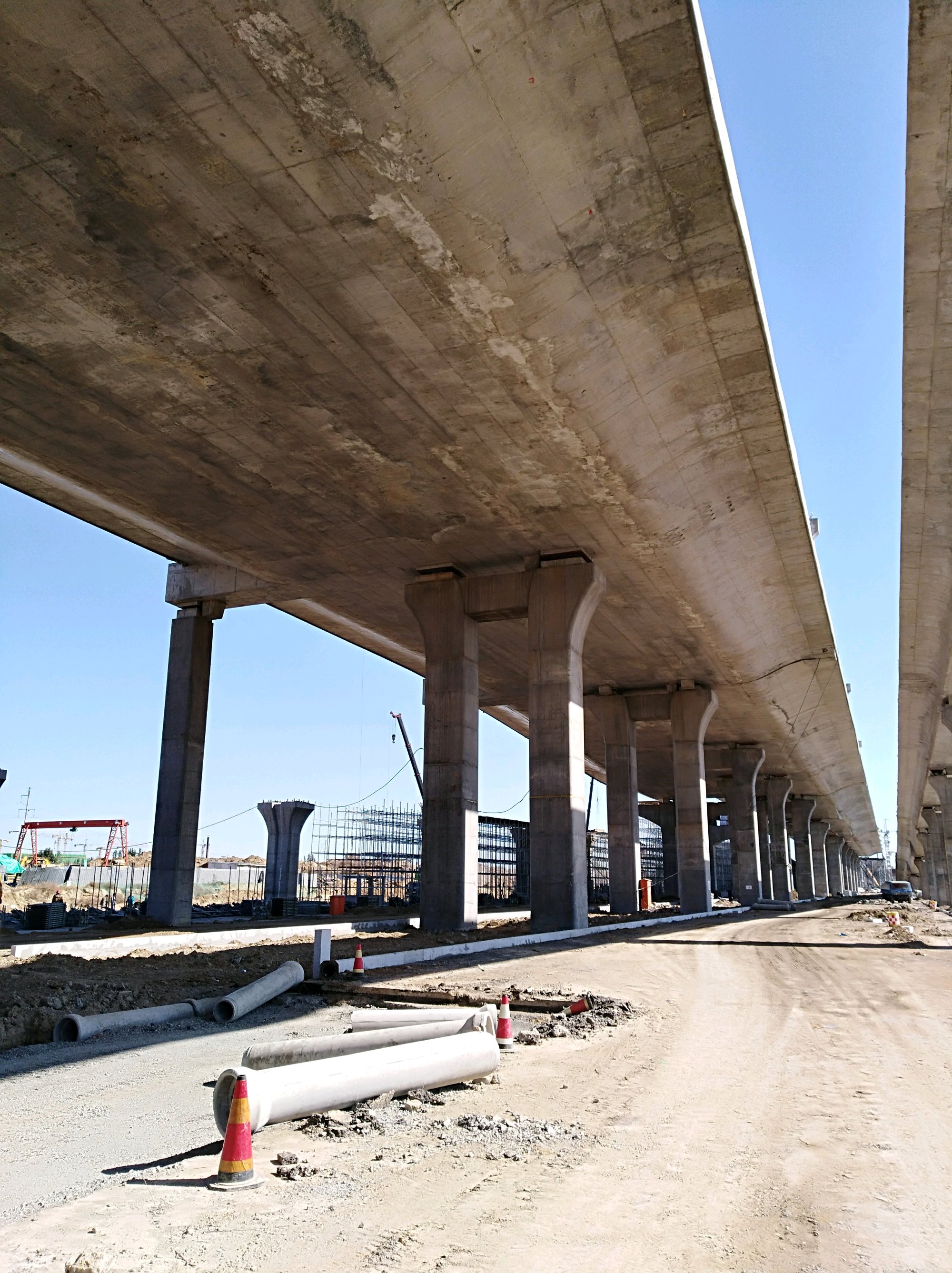 这里是高铁站前高架路工程比较复杂的关键部位之一,看来要采用较多的钢制箱梁。但是钢箱梁组装完毕之后,还需要铺设桥面,对环境温度仍然有一定的要求。所以这个过程还必须继续抓紧。