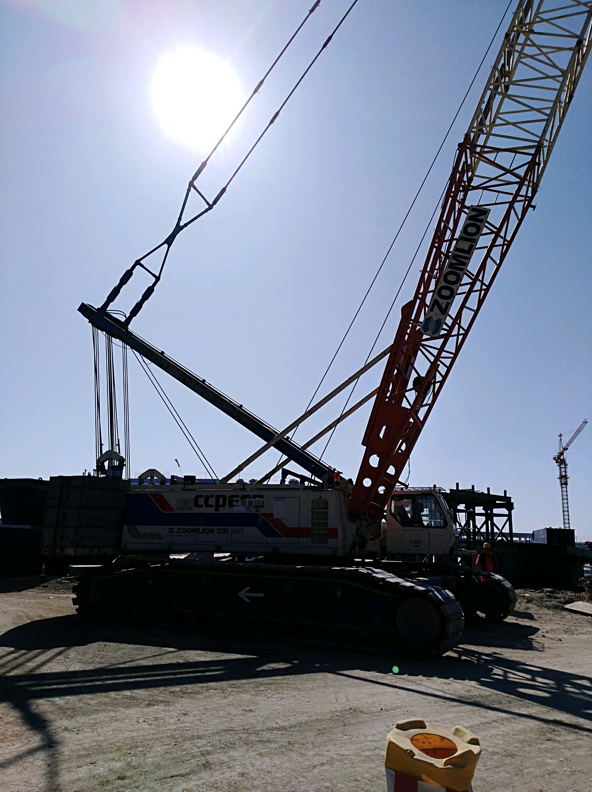 太和路口重型履带起重机正在吊装一片钢箱梁