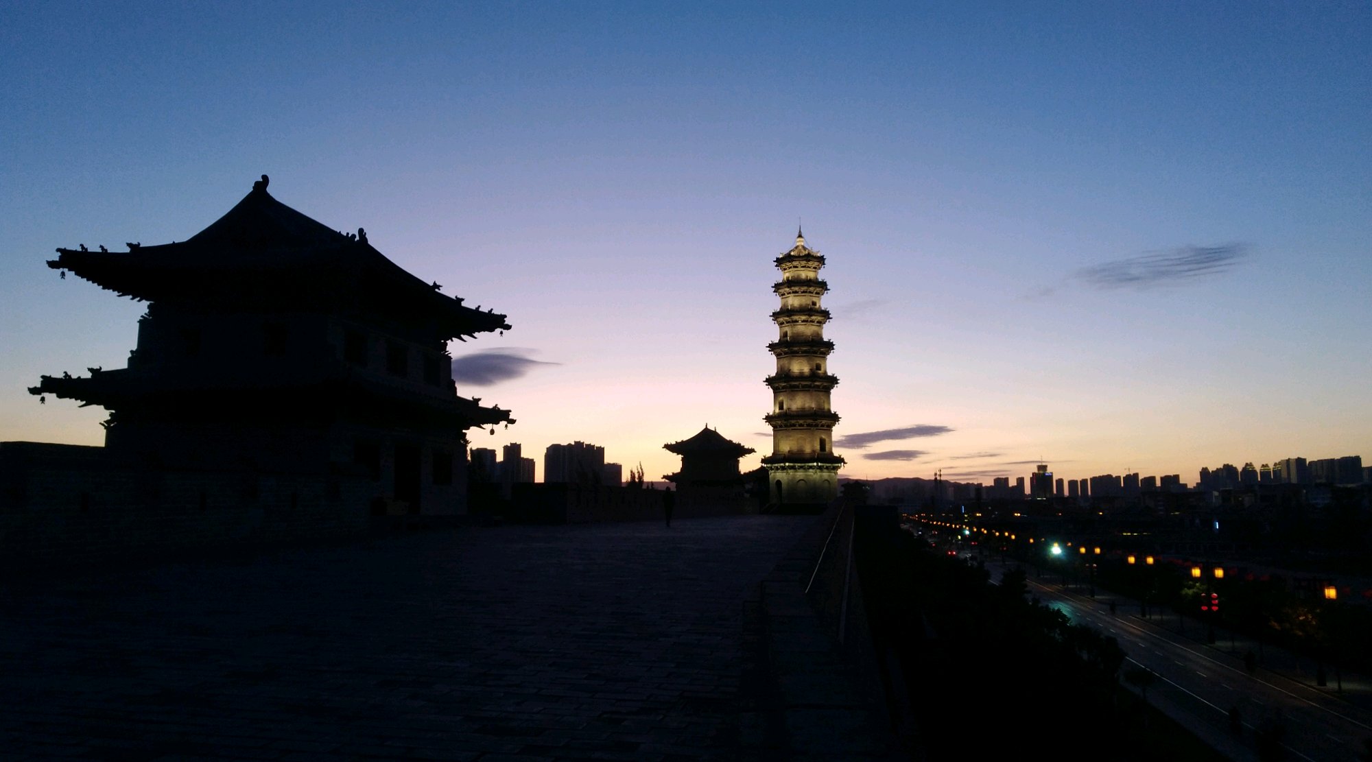 夜幕降临中的东城墙