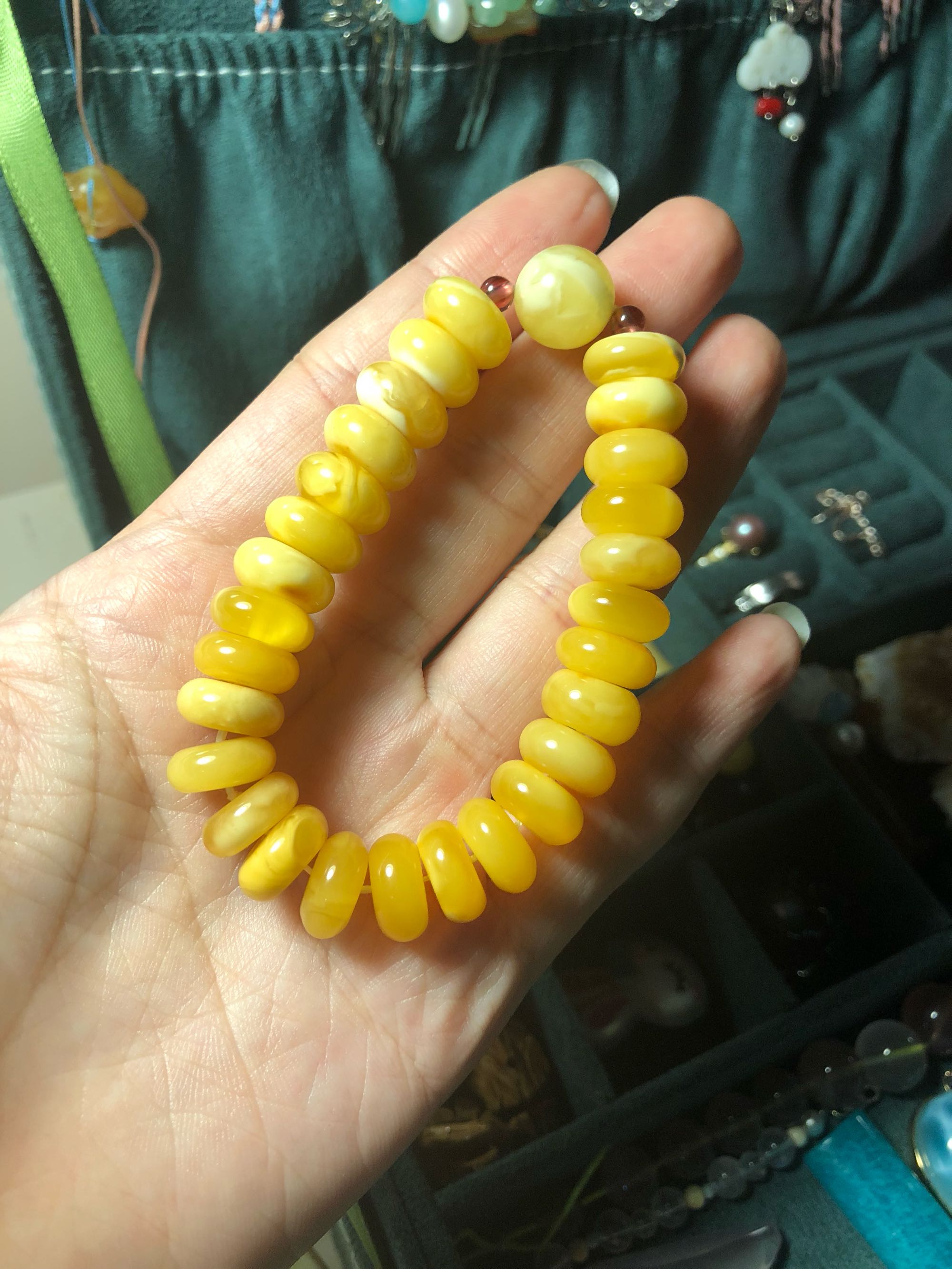 尺寸 9mm。配珠马粉不出,还有散珠三颗品相不太好。