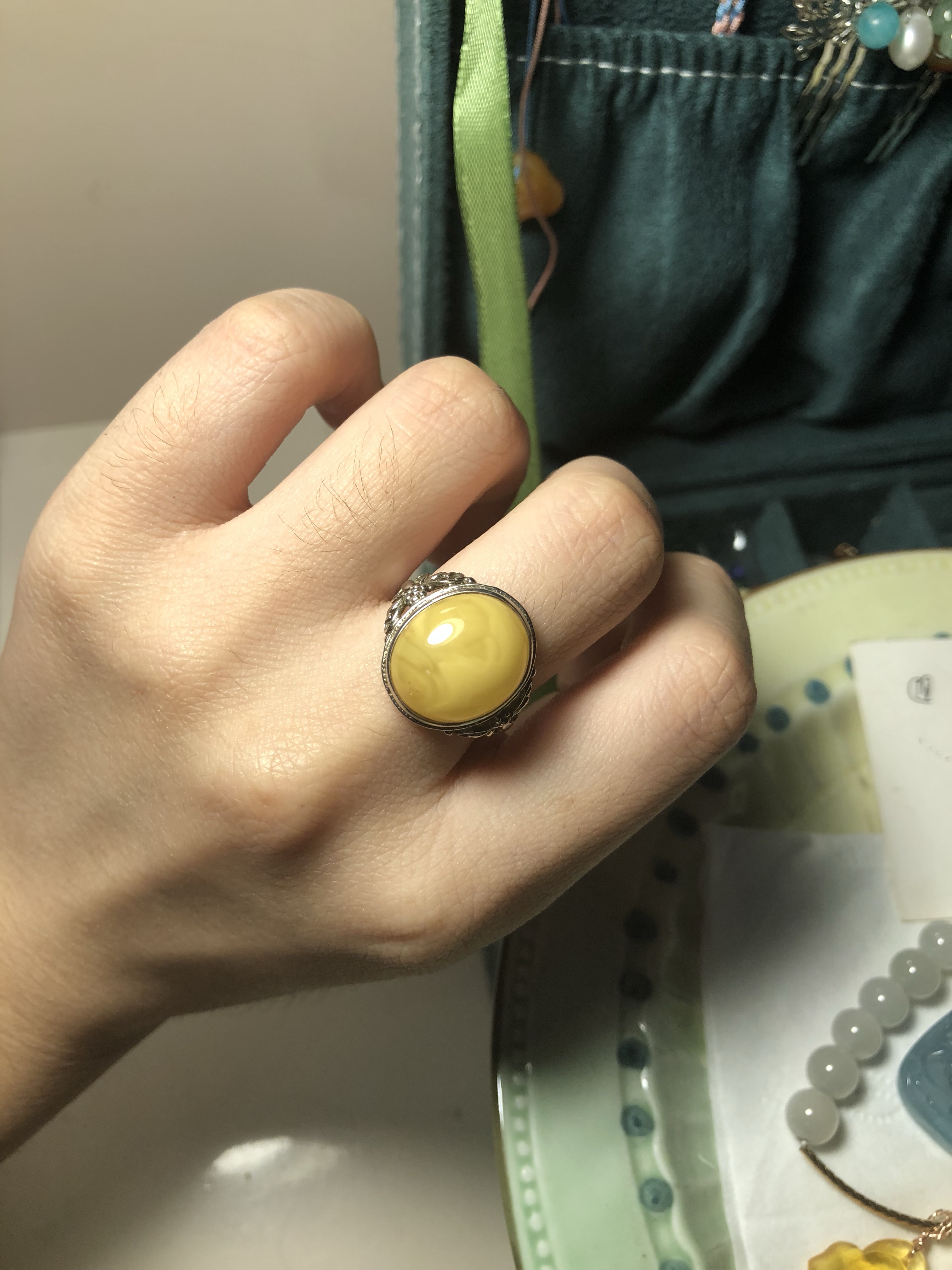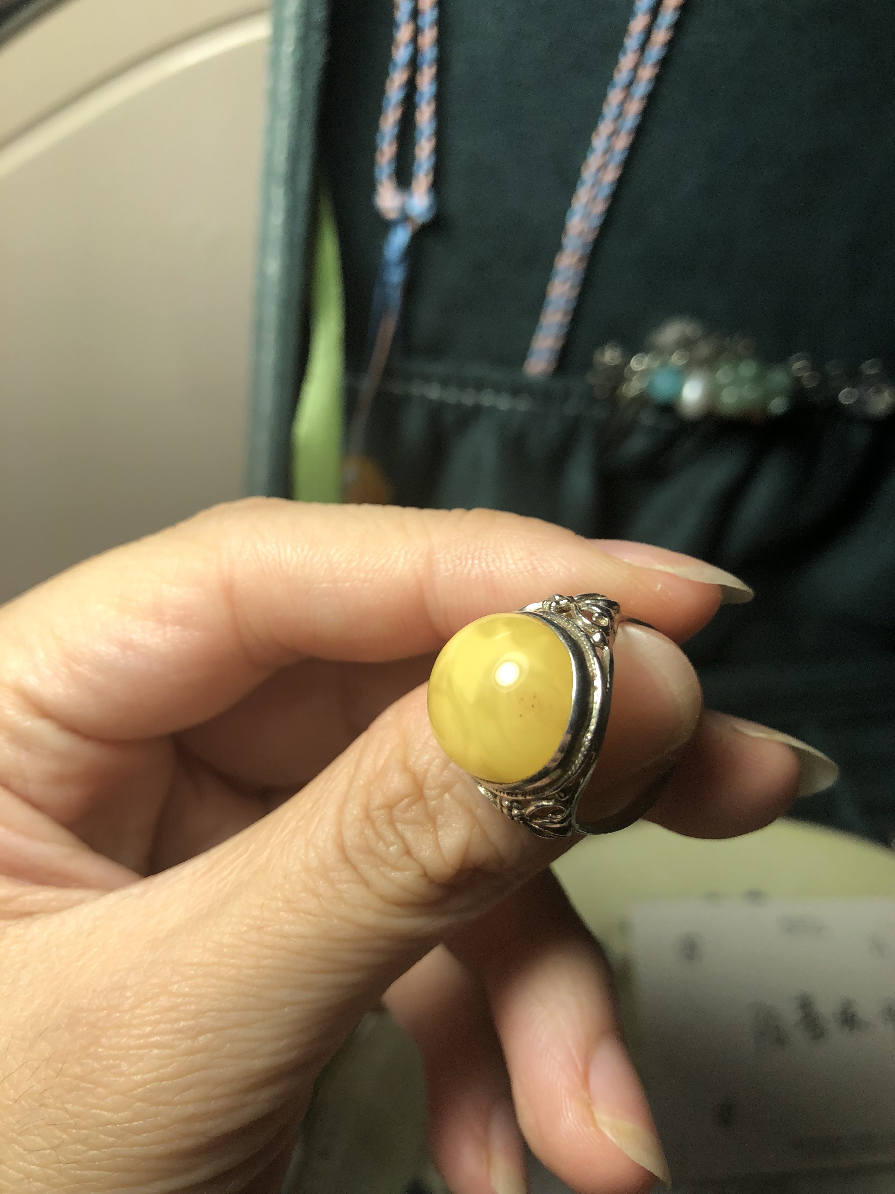 蜜蜡戒指,花白蜜,有点灰尘,圈口14号。