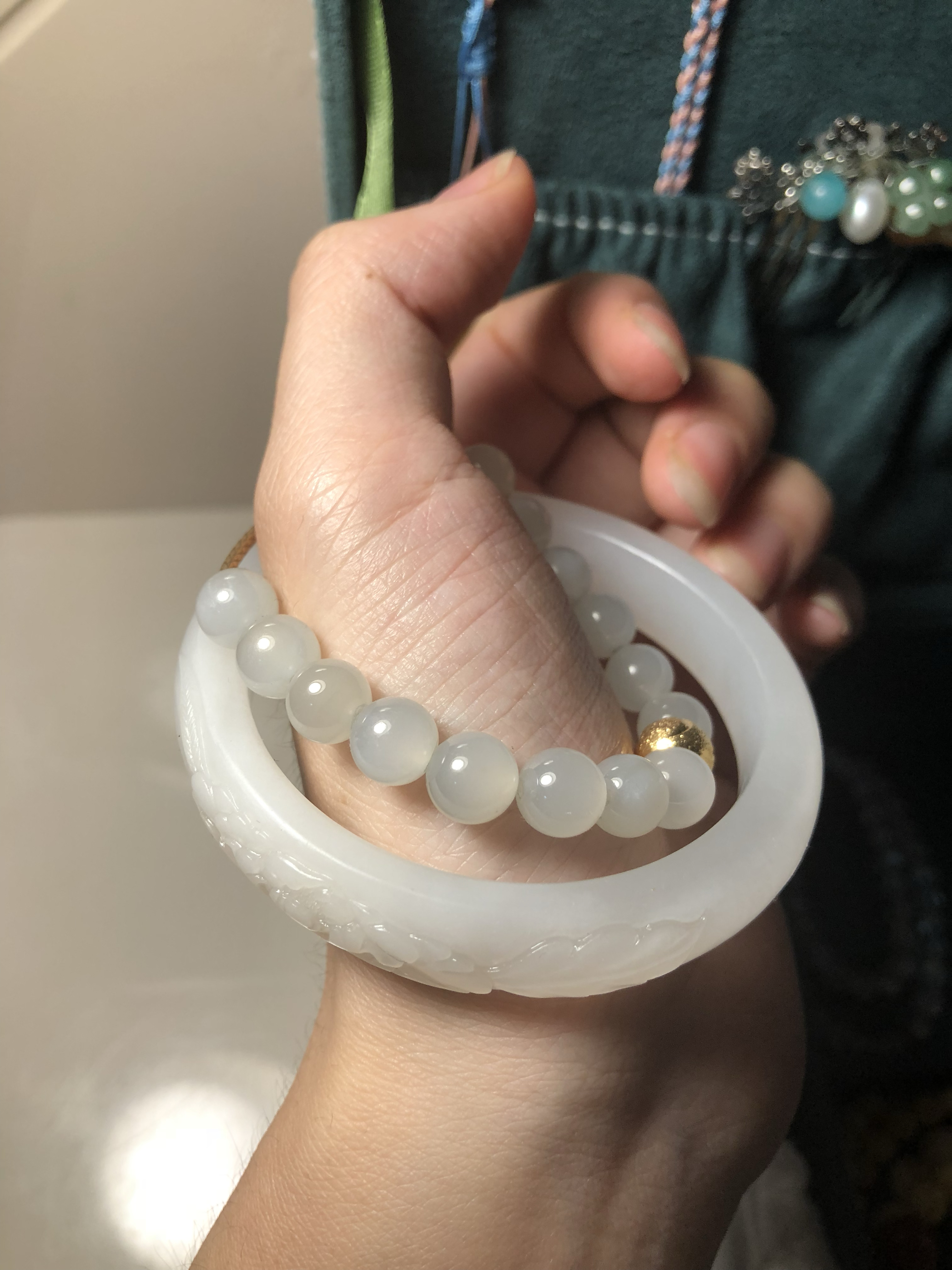 冰底白玉,每颗都有瑕疵,不明显。